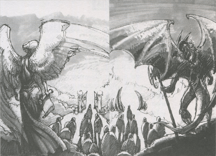 Only Cloud Realms Await/ Only Pit Realms Await. These beings believe in either pure reward or damnation no matter their sins or virtues.
