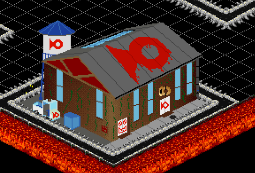 Hidden within Afterlife, there is a secret building you can make. It stores no souls. It has no vibes. To get it you must pause the game, create a 7x7 grid in hell surrounded by roads, in a diagonal rainbow pattern, starting from green to yellow and all the way to blue. When you resume the game the building appears. It’s called The Mother Shak. It’s a crudely rendered warehouse with a logo similar to The Leland Stanford Junior University Marching Band (Stemmle released a shareware adventure game called LSJUMBLE, which features the infamous band). As with many things Mike is responsible for, it is a layer cake of in-jokes.