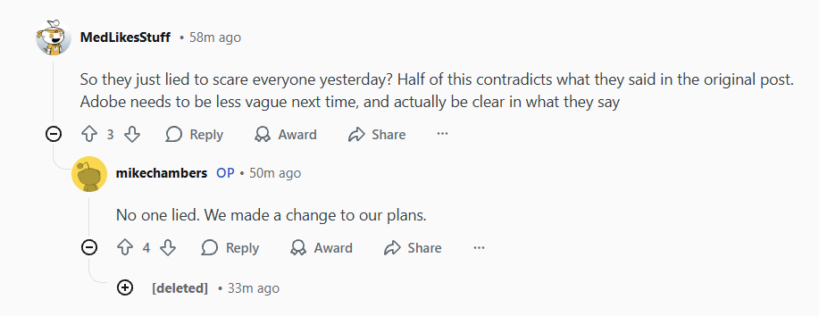 BONUS: Here's Mike Chambers, part of Adobe's community team, on Reddit earlier tonight: