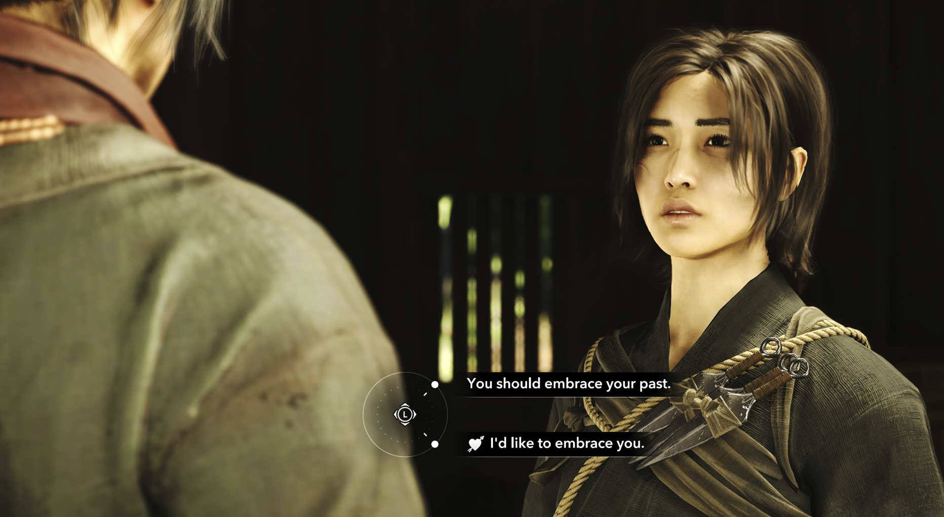 I encountered Gennojo--a thief--quite early on in the game, and his energy can best be described as "what if Lando Calrissian was broke and also a convicted sex offender". From your first conversation he's incredibly annoying, and making matters worse is that, playing as Naoe, he is constantly trying to romance you. Like, almost every single time you're given a dialogue option, one of them is for romance, leading to a series of conversations that (and I'm paraphrasing here) go something like this: