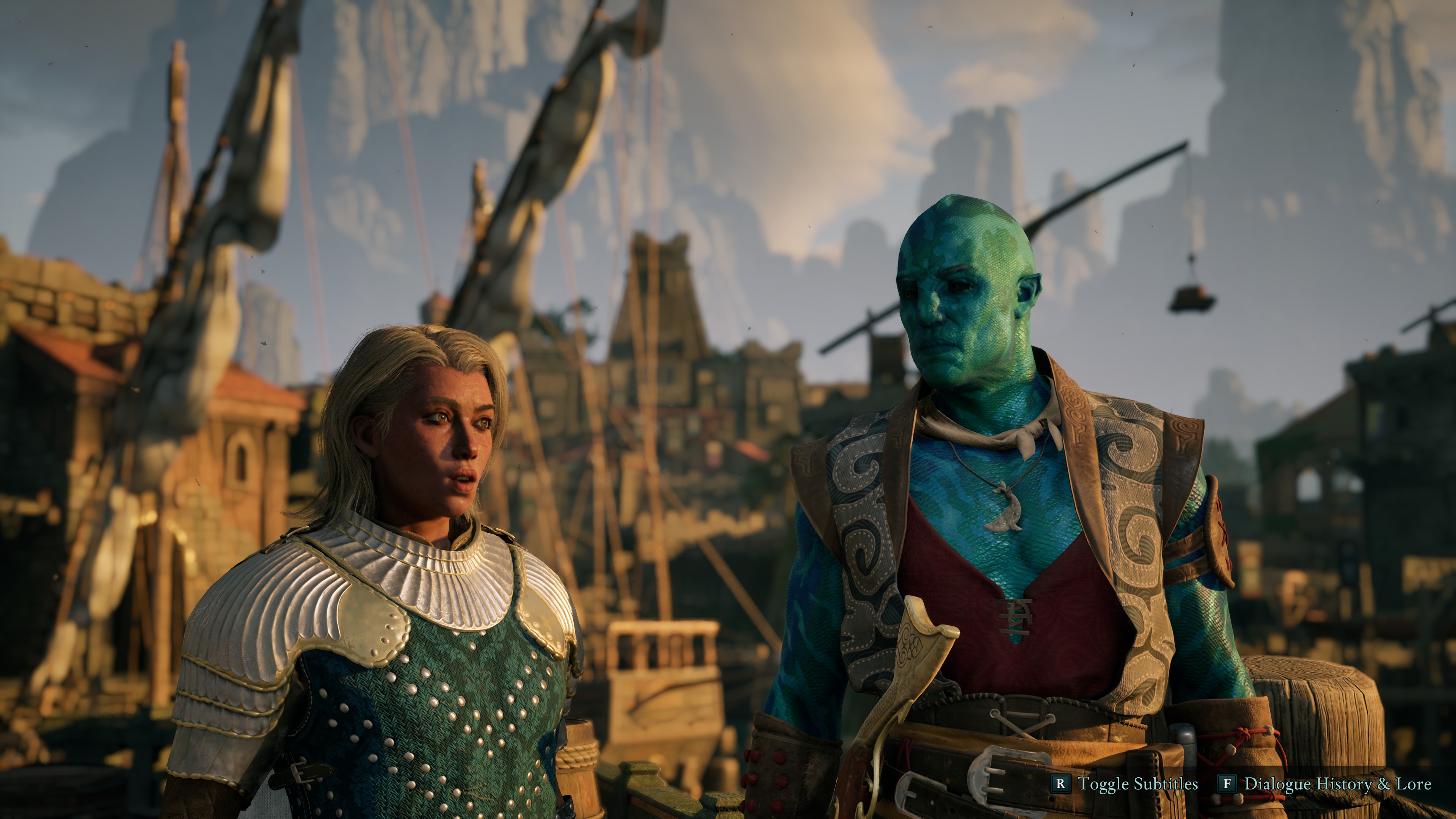 Up top is a screenshot of the conversation screen in action. Looks normal, right? A character talks, you select some responses, a conversation happens. But look at the two buttons down the bottom. The one of the left toggles subtitles on and off. Normally this is a main menu kind of thing, something you're supposed to toggle once based on preference then never touch again. Here, though, you can do it on the fly, which is amazing! I'm normally a subs off guy, but this game has some wild accents and creatures, so the button lets me turn them on for some (when I need to understand them) and off for others (so I can enjoy the game's gorgeous characters and environments unobscured).
