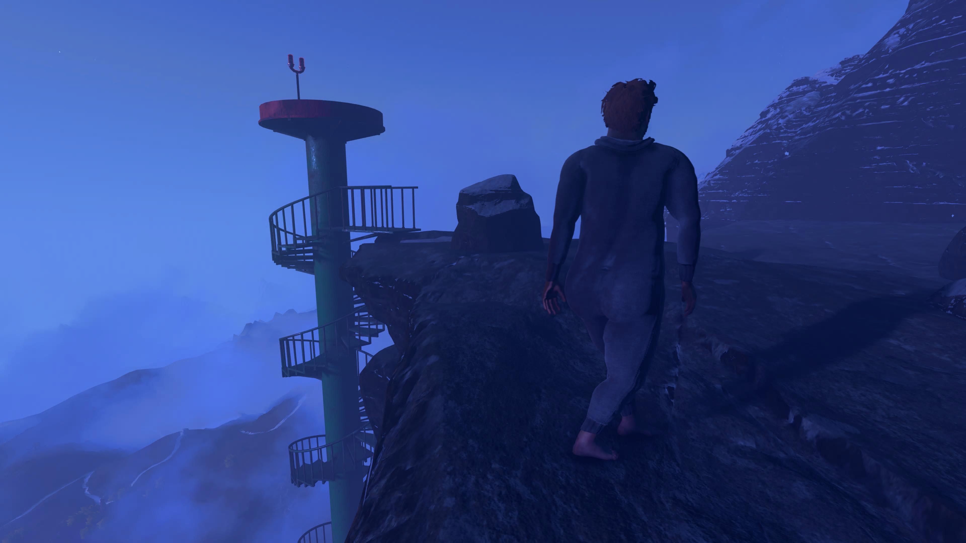 Throughout the game, Jim constantly offers Nate help. He is like a bodhisattva, a sherpa whose only purpose in this world is to help the others get to the top of the mountain. And yet, through a combination of anxiety and stubbornness, Nate steadfastly refuses to outwardly accept help. His repeated rebukes of Jim builds throughout the entire game, and Nate’s bullshit attitude and awkwardness increasingly wear away at Jim’s patience. As you climb the mountain, going from biome to biome, you eventually see Jim’s masterpiece in the distance: a 250 story green spiral staircase (seemingly based on a real one in the Taihang mountains) that he built for all the hikers to get to the top of the mountain easily.