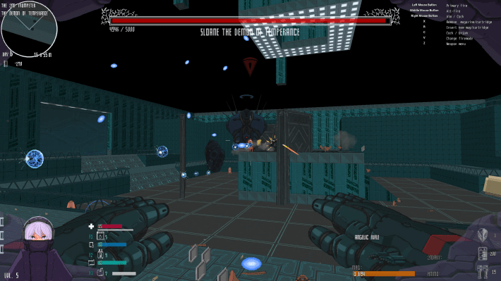 Beyond Citadel is a follow up to The Citadel, a retro shooter by solo Japanese developer doekuramori. In both, you play a character known as The Martyr. Humanity has suffered a near extinction-level collapse, and those who remain exist through the use of cybernetic enhancement. In the first game, The Citadel, the remnants of humanity were enslaved by an entity known as The Sleeping God. The Citadel follows The Martyr’s attempt to destroy the guardian angels and kill the aforementioned slumbering deity.
