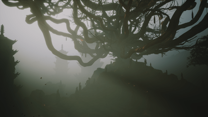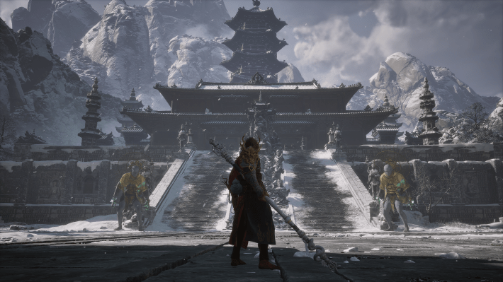 There is a shocking degree of creativity on display in how Game Science has decided to render the universe of Black Myth: Wukong, from towering, trans-dimensional pagodas in snowy climates to dense spider caves. It looks gorgeous, many of Unreal Engine 5’s bells and whistles like Nanite have been turned on, and the game makes extensive use of particle effects in several fights, from billowing smoke to snow and sand or leaves. One fight makes aggressive use of floating pages of Buddhist scripture. Black Myth: Wukong is also a poorly optimized game at times, although definitely not the worst I have seen, with framerates often plummeting suddenly in certain areas. But what strikes me is the sheer confidence, the boldness of every choice in the game.There are no half-measures in Black Myth: Wukong; it is clearly the work of a company that has yet to hit its stride, but which is trying to make a scene with its arrival.