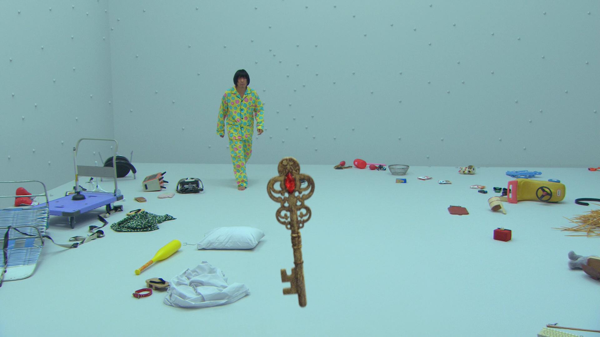 The ramp in difficulty has a tinge of punishment that I appreciate. While playing I was reminded of the 2009 Japanese absurdist comedy Symbol, in which a man wakes up in a blank room wearing clown pajamas. The walls are covered in angel penises, white like light switches, and every time he honks one “something” happens, often to his frustration and torment. His goal quickly becomes to escape the room, but every time he gains a foothold another barrier erupts to smack him down, breaking him mentally. Symbol’s director/actor Hitoshi Matsumoto is best known for being on the hit variety show Gaki No Tsukai, known for its infamous “Batsu games” like “No-Reaction Pie Hell” and “ 24-Hour Tag,” and that goofy, Looney Tunes sadism is infused in many of his films and shows. These are works about people inhabiting a space with arbitrary rules, and that space drives them to the brink of madness.