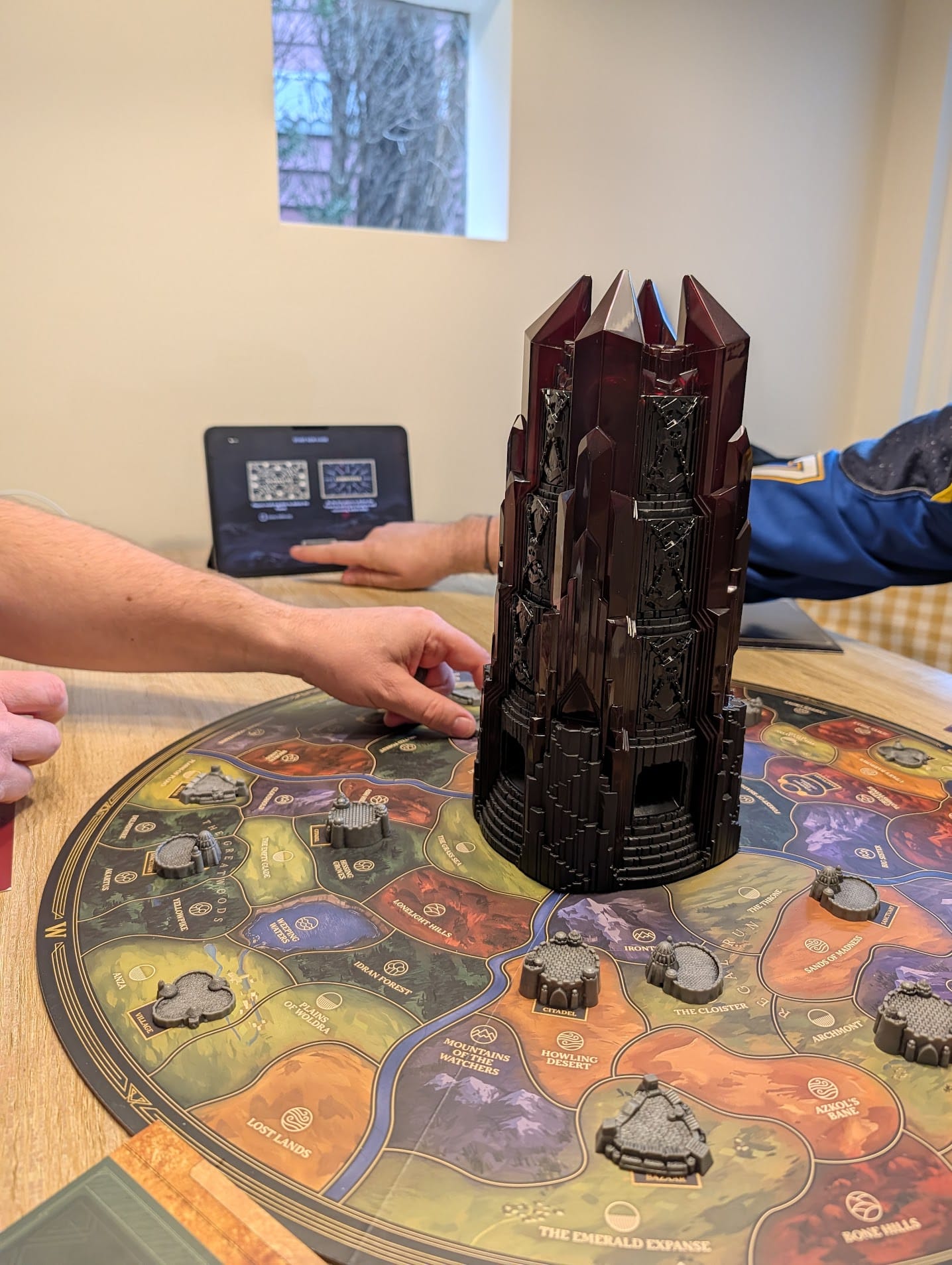 Where else can you backstab one of your best friends and have everyone laugh about it, or feel your phone buzz under the table to read a text message from someone else across the table, telling you to murder someone else at the table? There's an accessible pleasure to being able to just sit down and play a game at the same time as someone is explaining the rules to you as you go, and there's something wonderful about the tactile experience of holding some glossy cards, moving some beautiful miniatures across a table just to annoy someone sitting next to you or...having a huge plastic tower shoot skulls at you.