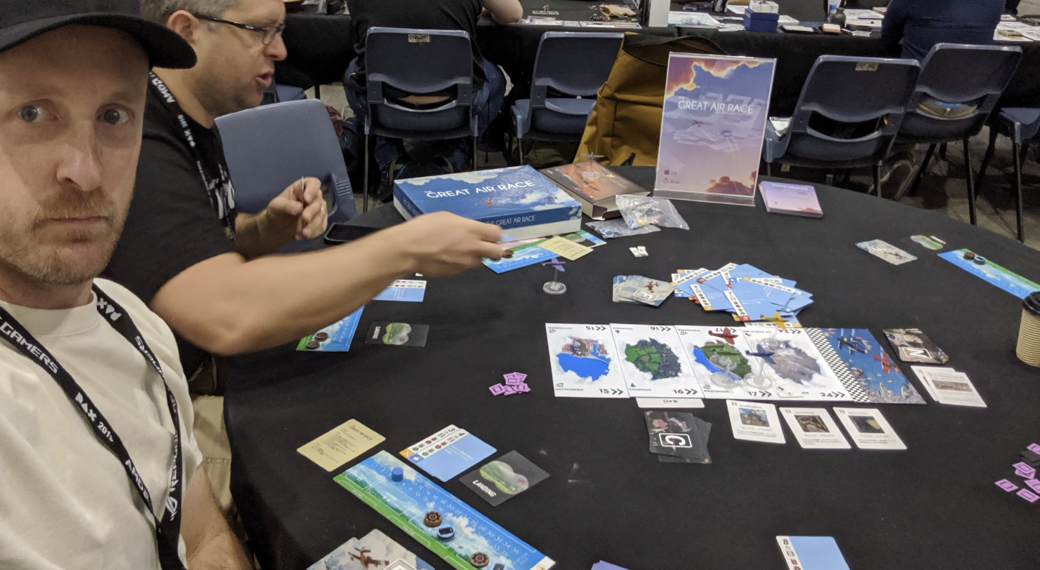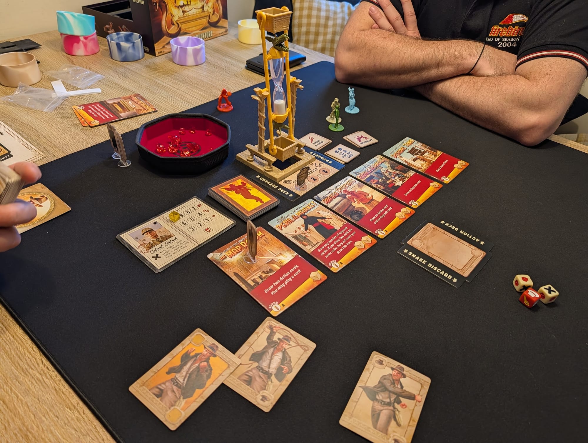 I played Indiana Jones: Sands of Adventure, a family board game with a card-battling feature that feels weirdly like an actual Indiana Jones fight scene. I played No Thanks, a card game where you're spared from doing the worst thing possible because the person taking their turn before you had to do it first. I played Archaeology, where selling artifacts to distant museums is fine, I guess, because the practice has had so many edges sanded off to make it a card game that it's a blast.