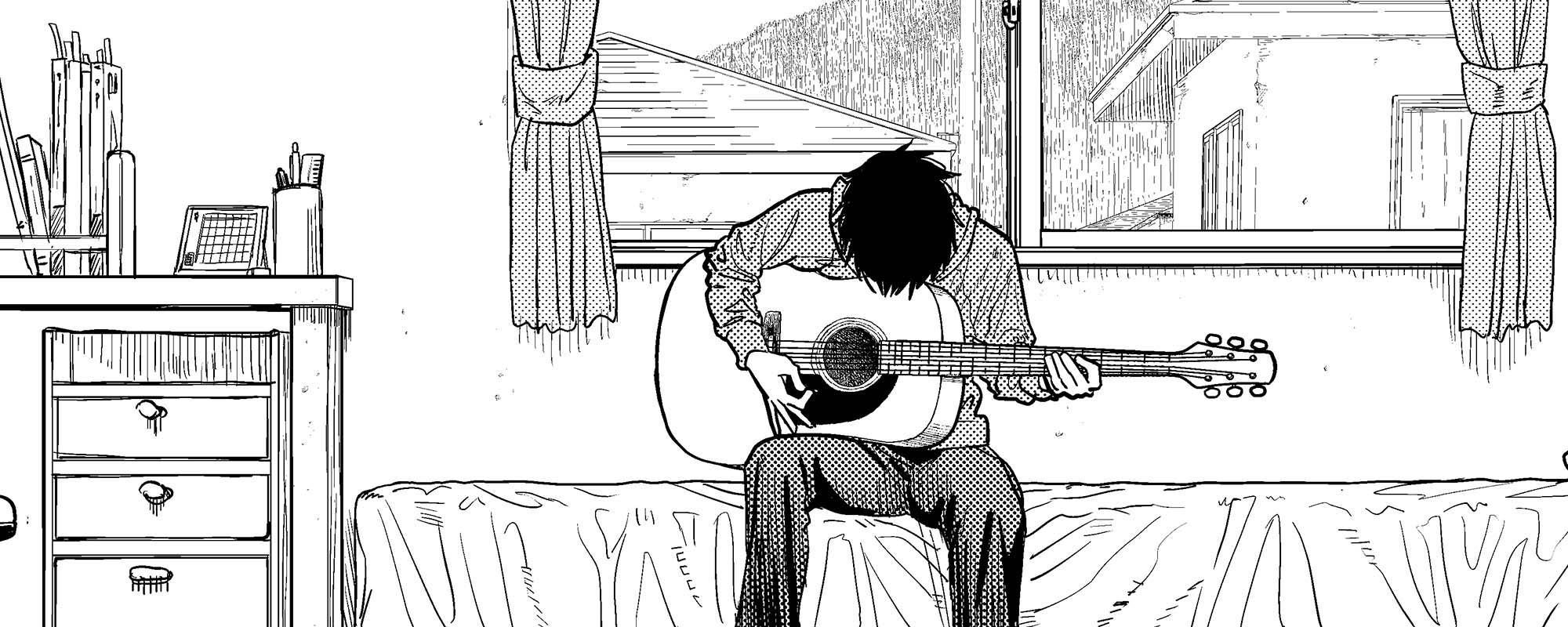 Which brings me to my nervousness the day the chapter dropped, wracking my brain on what I’d write to compile my feelings on a series and a creator whose career trajectory felt intrinsically linked to my own as a critic. It made me think about Just Listen to The Song, one of Fujimoto’s three one-shot manga that he wrote in the interim between Chainsaw Man and Chainsaw Man Part 2.