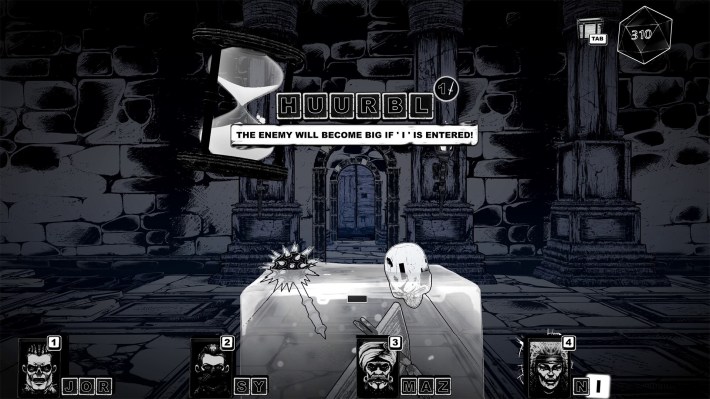 The combat is typing-based: your characters have cards with letters next to their names, and as you fill those letters in (we’ll get to how you do that in a second) you spell words that unlock powers. Joro, the warrior, has moves like “hit” and “boot” that damage or kick enemies away. Nix, as a sea witch, can unleash damage-dealing rains of crabs, fish, and other aquatic life. Characters can also boost each other’s damage, reset each other’s cooldowns, or heal each other. Most combat words cost “souls” to use, meaning if you’re not careful, you can end up only able to use the basic free attacks.