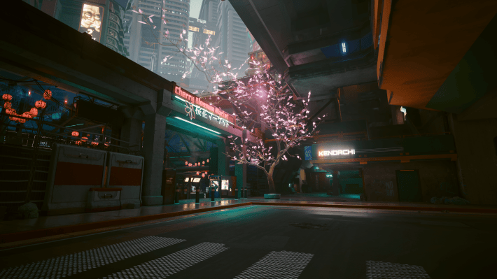 Night City is full of places like this: walkable public space with restaurants and retail.