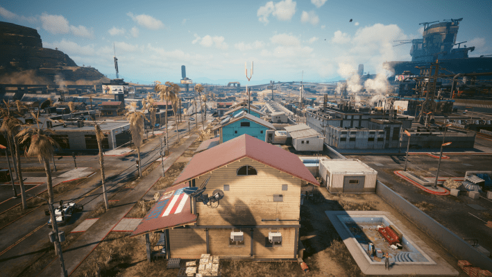 If Night City were made reality, those dilapidated detached homes in Rancho Coronado would be multimillion dollar pieces of prime real estate, a rare opportunity to own a detached house with your own yard in a hyperdense metropolis. The real meat grinder would be the traffic on your commute if you lived elsewhere. In a city like Toronto industrial zones aren’t places you linger unless you’re working there. When I pass by a lubricant plant on one of my regular bike rides I speed up, trying to avoid breathing the air. The lubricant plant serves a purpose, but it's kept on the city’s outskirts for a reason.