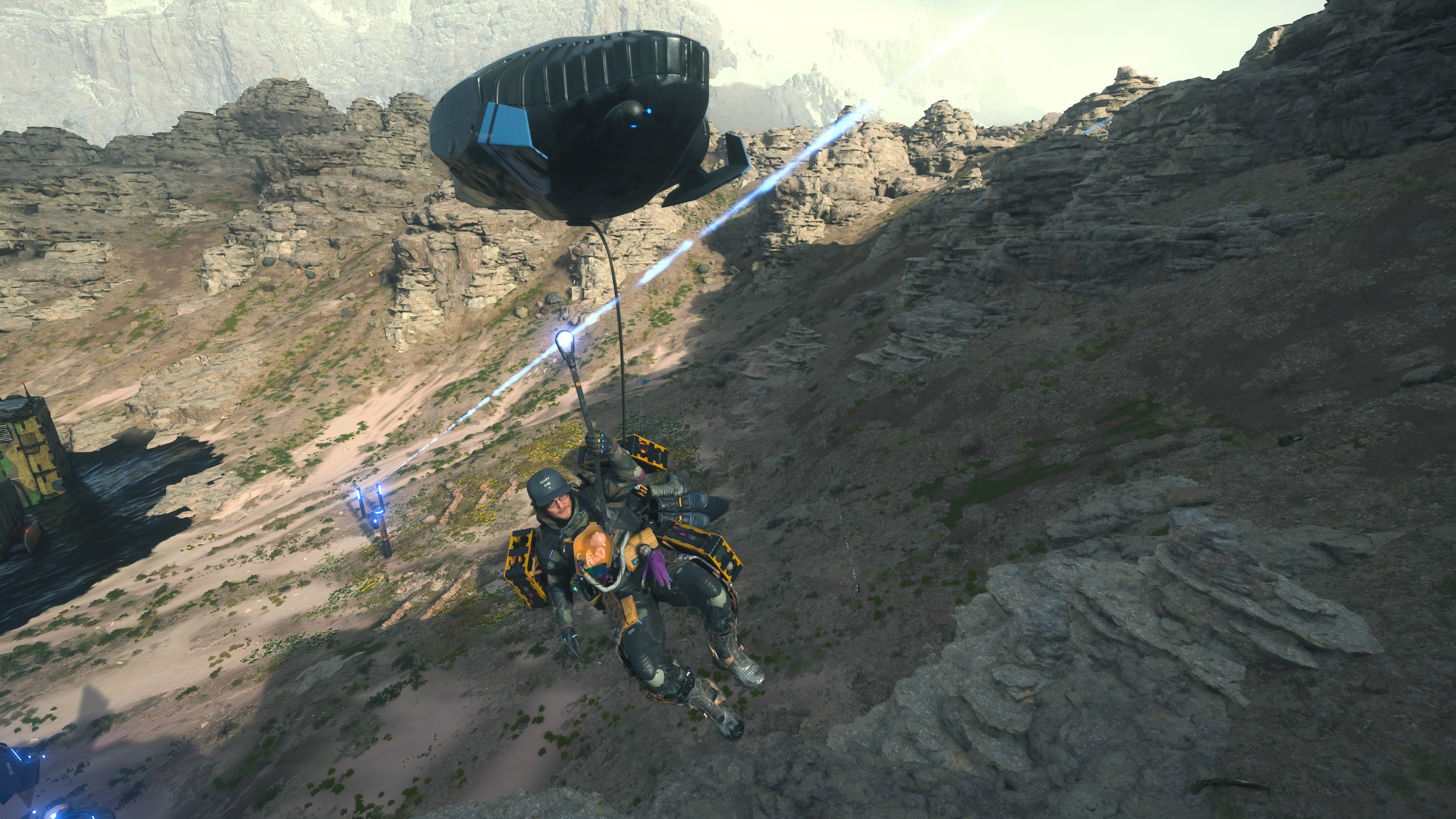 This is also one of the few times that I have played a Kojima game that feels ruminative instead of attempting to predict the future. Norman Reedus’ physical performance is notably haunting, conveying with his presence a man who has collected more hurt than he can bear. There is a clear message from the beginning that, as Sam enters Mexico over the rusted ruins of Trump’s border wall, the United States is a cancer on the world whose entire existence is extractive and violent.