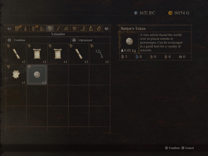 For people who don’t play this game, seeker’s tokens are little coins that you pick up around the world. There are 240 of them in this game, scattered throughout the map. The game is testing to see if you remember the specific circumstances under which you got the first one, and gives you seven real in-game days to find where that was and find the “finder’s token”. You cannot easily savescum, since you have only two saves (the automatic/last save, and the save from the previous inn’s rest). Since everyone’s game is different, it’s impossible to use a FAQ to solve this. Dragon’s Dogma 2 is basically asking you “hey, do you remember where you picked up that wheat penny like 3 weeks ago?” The only way to easily defeat the riddle is to have the knowledge of the riddle well in advance of the riddle before you play the game.