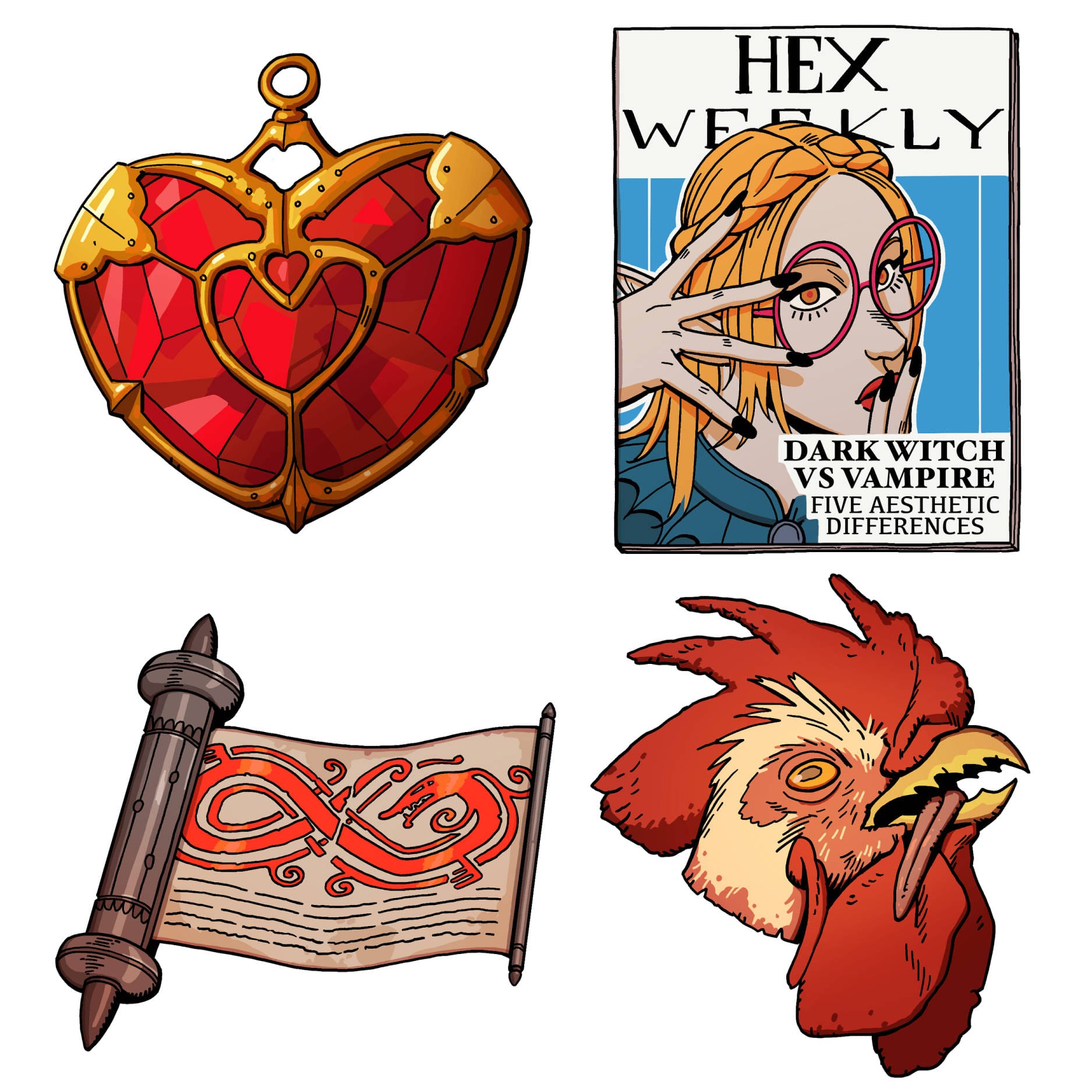 Some of the final, in-game illustrations done for inventory items