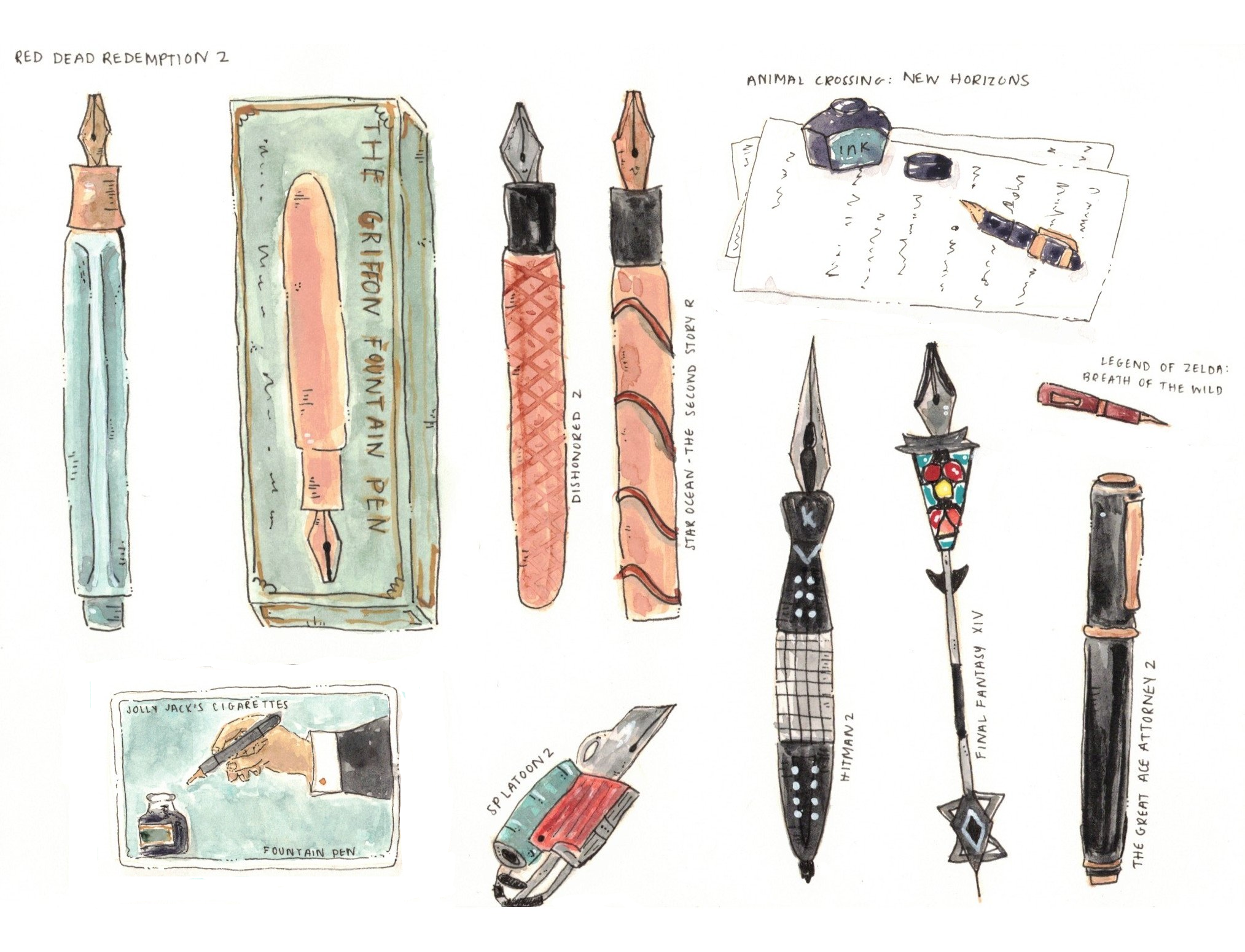 There are a lot of fountain pens in video games–you just may not have noticed them. Fountain pens, however small a piece of a game, signal something to the player: the time period, perhaps, or something about the person writing with it, though they could also simply be an item filling up space on a desk. I started noticing them more than six or seven years ago when I started using fountain pens in real life. Suddenly, they were everywhere in games. My friends send me screenshots of them whenever they see them.