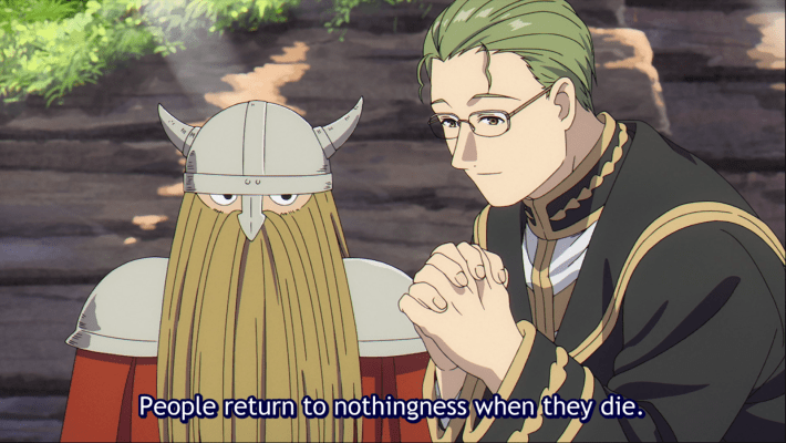 A good example is the conception of magic in the show. Magic is not a static force like it is in much of fantasy, but a science that develops over time like technology or warfare. What once was the deadly killing spell of an evil wizard eventually becomes a part of everyday magic, in the way that a flintlock pistol would seem quaint by today’s standards. Time and magic change rapidly, particularly from the point of view of humans. Additionally, unlike much of fantasy, the conception of the soul and the afterlife is not certain. A much lazier work might start with the assumption that if magic is real, then ghosts and the soul certainly are, but Frieren bucks against this assumption. In a flashback to the party’s journey, it is revealed that dwarves do not believe in an Afterlife, because they respect tradition and this was generally the most commonly held belief until several thousand years ago. Frieren herself states that Magic has not progressed to the point where it can measure a soul, so it can neither prove nor disprove the afterlife at this point. Despite living in a fantastical world, the people of Frieren are as uneasy and unsure about the darkness of their own death as we are.