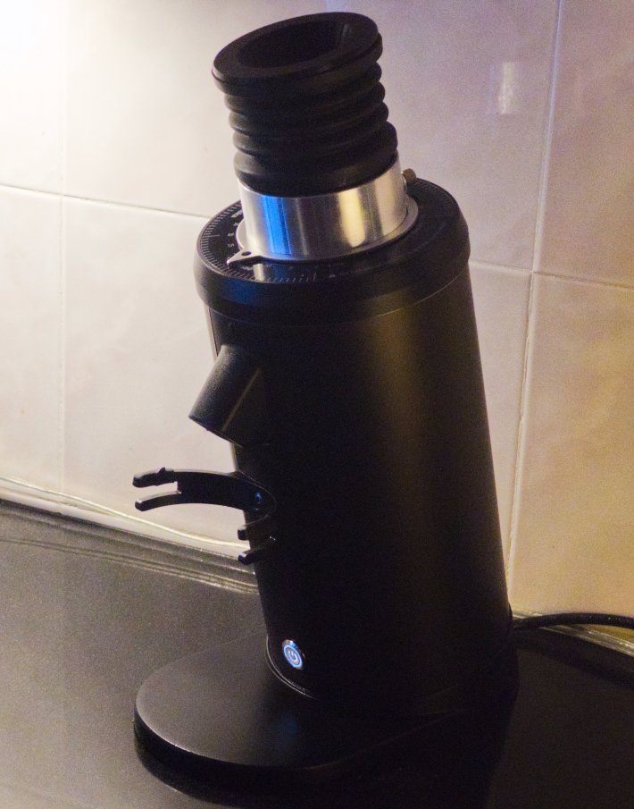 1Zpresso creates fantastic hand grinders now if you don’t mind a little manual labor, but I wanted something automatic. A nice facet of coffee culture is that coffee guys are often selling their gear to buy new stuff, so I was able to buy an older version of the DF64 grinder with a bunch of anti-clogging mods (necessary for the early models of the machine specifically) from a guy I met on an espresso Discord who had upgraded to a commercial model. It’s a beast of a grinder, weighing in at 15 pounds, and takes up about as much space on my counter as my Vitamix. He also offered to sell me some new, custom burrs for the machine, but I politely declined as I had not crossed that threshold where I am spending 180 dollars on burrs. To give you a hint of how fast this coffee world moves, since I started writing this blog, the DF54 has emerged on the scene, itself hitting an ideal 230 dollar sweet spot. I don’t regret buying my machine, but if I had to do it again I would seriously consider the smaller, lighter machine.