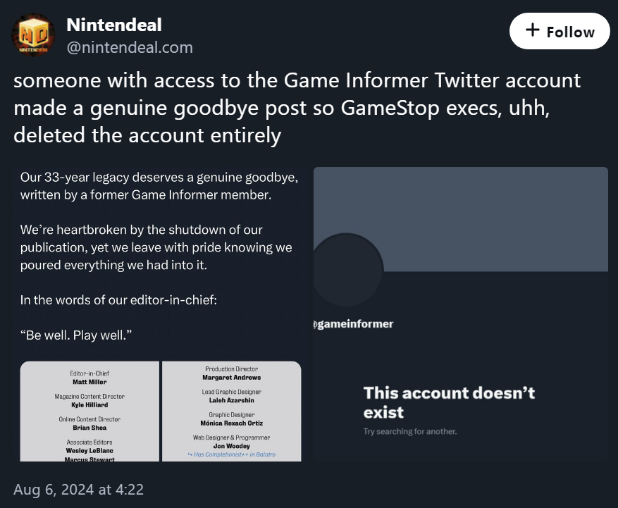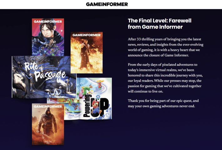 Last week it was reported that GameStop, a clown show of a company peddling meme stocks and cheap video game merchandise, had unceremoniously and without notice shut down Game Informer, a magazine and website that had been publishing in some form since 1991.