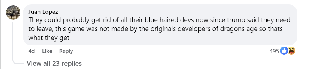 Game Rant are far from the only games site to overemphasise Dragon Age's role in EA's financials, partly because few games writers understand financials, but mostly because the majority of readers of specialist video game websites don't care about sports games. But specifically centring Taash, a nonbinary character from a game that has received disproportionate blowback for its casting decisions, in a post specifically tailored just for Facebook, a platform that has jettisoned all attempts at civil discourse and abandoned itself wholly to the very worst people on the internet, sure is a look.