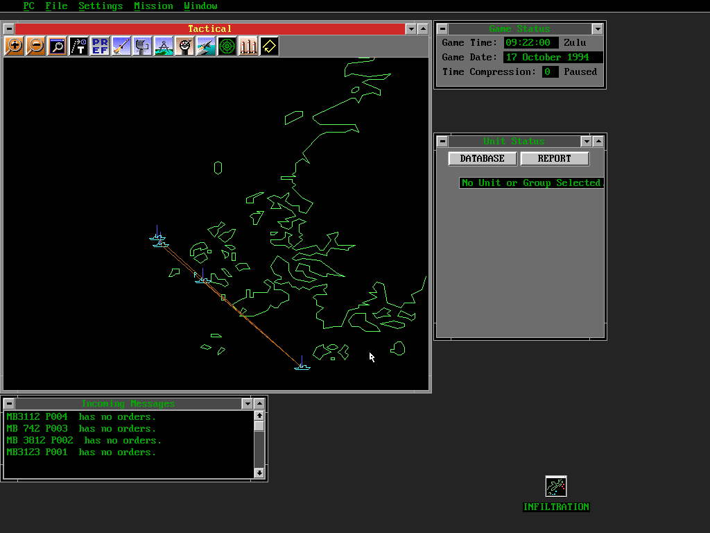 I must stress here that this is fine! Actually it's more than fine, it's expected: this is what this series and this genre looks like, whether you like it or not, and it would be really weird to play a Harpoon game and suddenly find yourself confronted with "graphics". Like 2023's Rule The Waves 3 (see below), there's a certain throwback charm to this, and the people who will actually be spending money on this game wouldn't have it any other way.