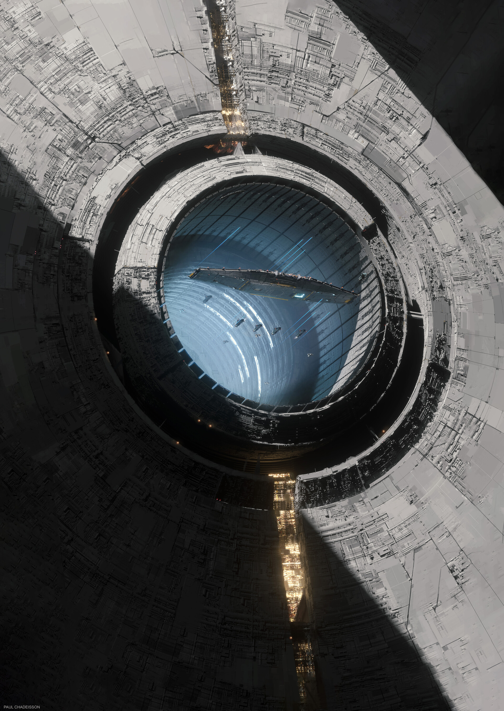 PC: Blackbird had already done a lot of visual research before I joined the project, and had found a very good balance on how to represent those megastructures in space. It was very refreshing, and opened a lot of creative gates in my own ideas for art direction. The ideas behind what you're trying to represent go on to influence everything else--the shapes, the scale, the texture--and you need to make sure everything makes sense. Focusing on just doing something at a big scale is not an easy thing to do; rather, you need to find the appropriate shape and scale to a specific design, try to have something that makes sense.