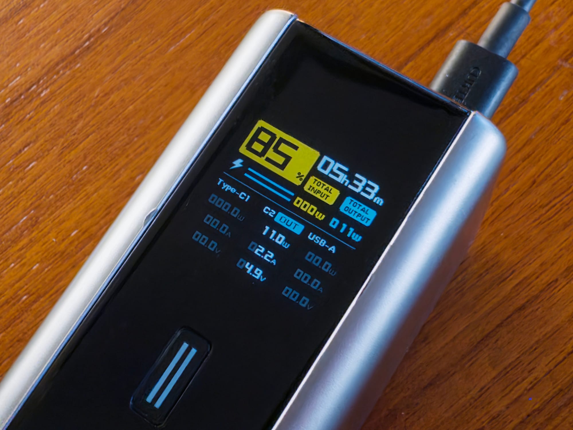 Cuktech, which I believe is named after the Ćuk converter and is pronounced “chook tech,” makes well-made gear. The Cuktech 15 Ultra boasts a capacity of 20,000 mAh, has a bright and beautiful screen that displays the charging speed of each port, and claims to have 140w output which is generally overkill but nice if you have a MacBook Pro (The highest end iPhone currently caps out at 40w tops, which is fairly fast for most people.). USB-C charging standards are annoying to keep straight and are only interesting if you have a bizarre obsession. What makes the 15 Ultra interesting is not that it has a high output, but that it has a mode dubbed “Beast Mode” that it claims allows for two simultaneous inputs of up to 165 watts (the internal meter capped at around 160w for me) for the majority of the time plugged in before it starts ramping down.