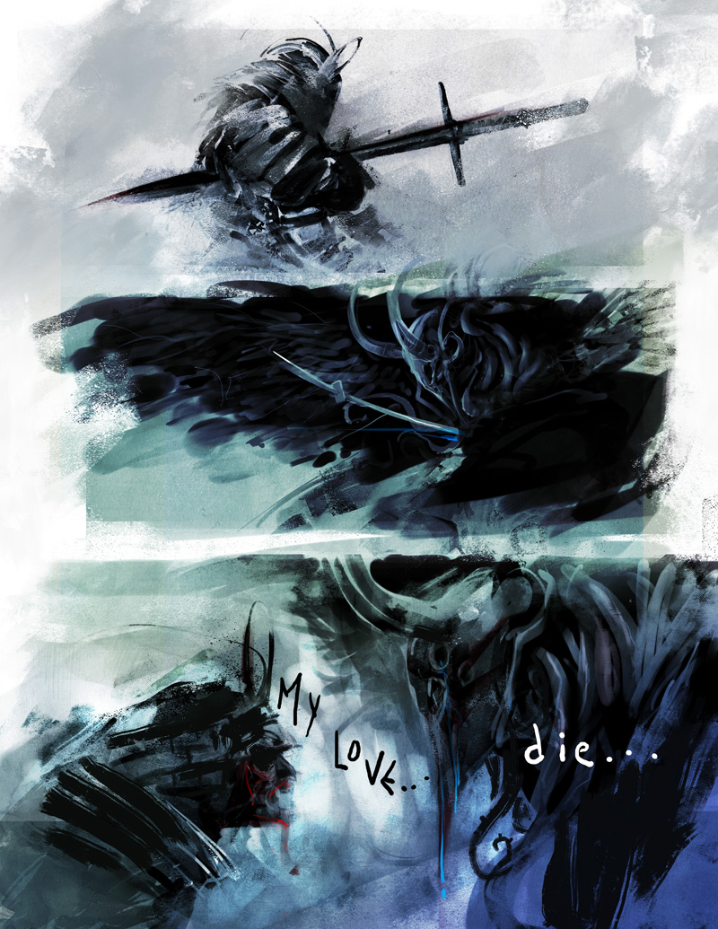 Even if you’re thumbing through its pages for all the sexy bits, Flower’s art will make you double back to see what everyone was talking about in its color-coordinated, character-specific speech bubbles. And it turns out, while you were reciting “Blah blah blah proper name place name backstory stuff” in your head as its pages stunlocked you with the artistry of Flower’s oily drawings, you’ll discover that his writing is just as bold.
