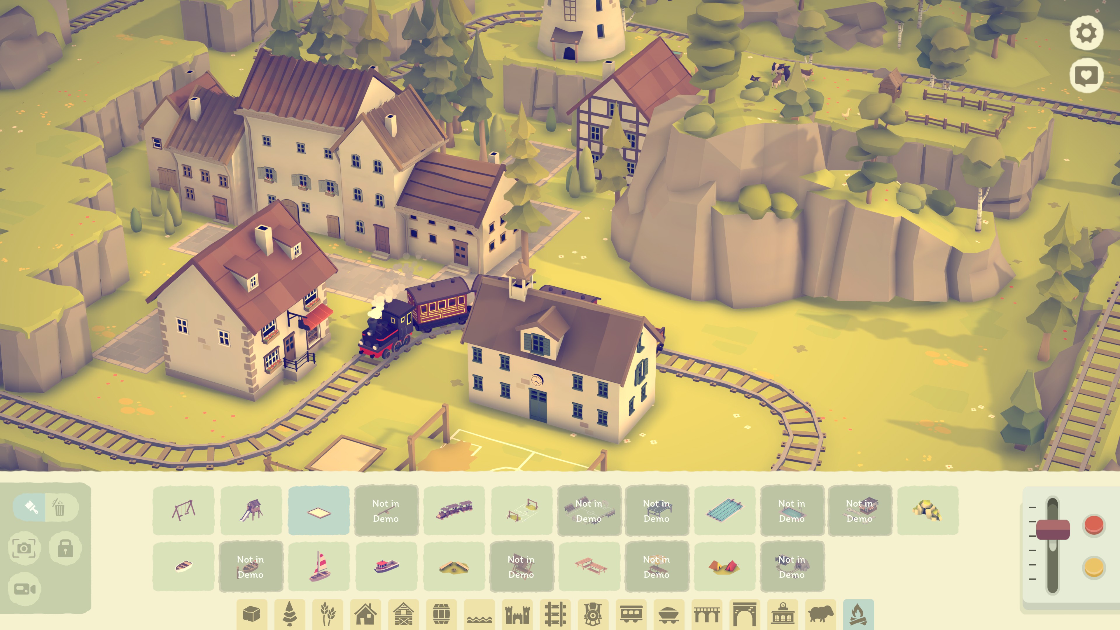 Islands And Trains' release date is TBA, but being a sandbox game this demo lets you mess around with most of it; it's just the variety of options that are limited, so most of the stuff you can do here is the same as the full release, you just don't get as many buildings, terrain, climate or train options as you will when it's finally out.