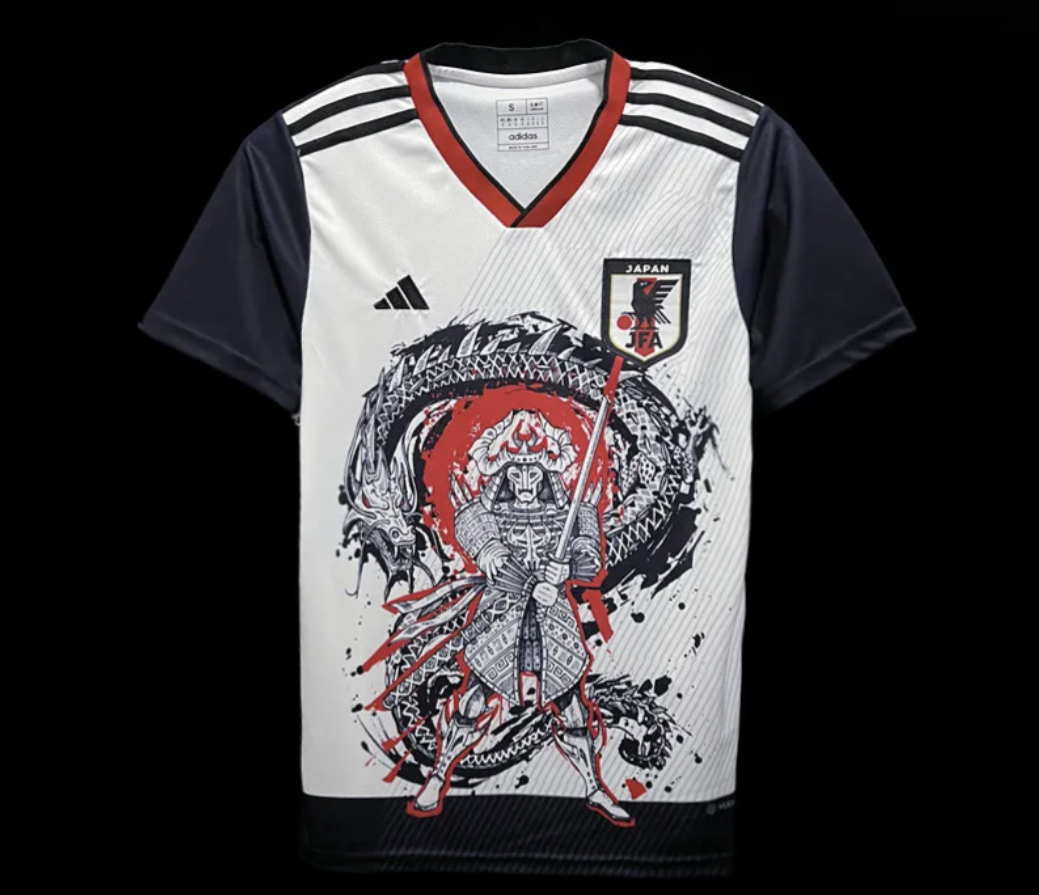 I use the word "original" loosely, of course. Nearly everything I'm going to talk about here involves stealing multiple types of intellectual property, or lifting designs made by fans online without accreditation or compensation. But the fact remains that, if you were looking to buy a fake football shirt for, say, England or Italy, you'd be presented with a limited selection of counterfeits copying those teams’ actual kits. And if you went looking for a Japanese shirt, you'd be shown dozens of designs, most of them not even remotely close to what the Blue Samurai wear when they take the field.