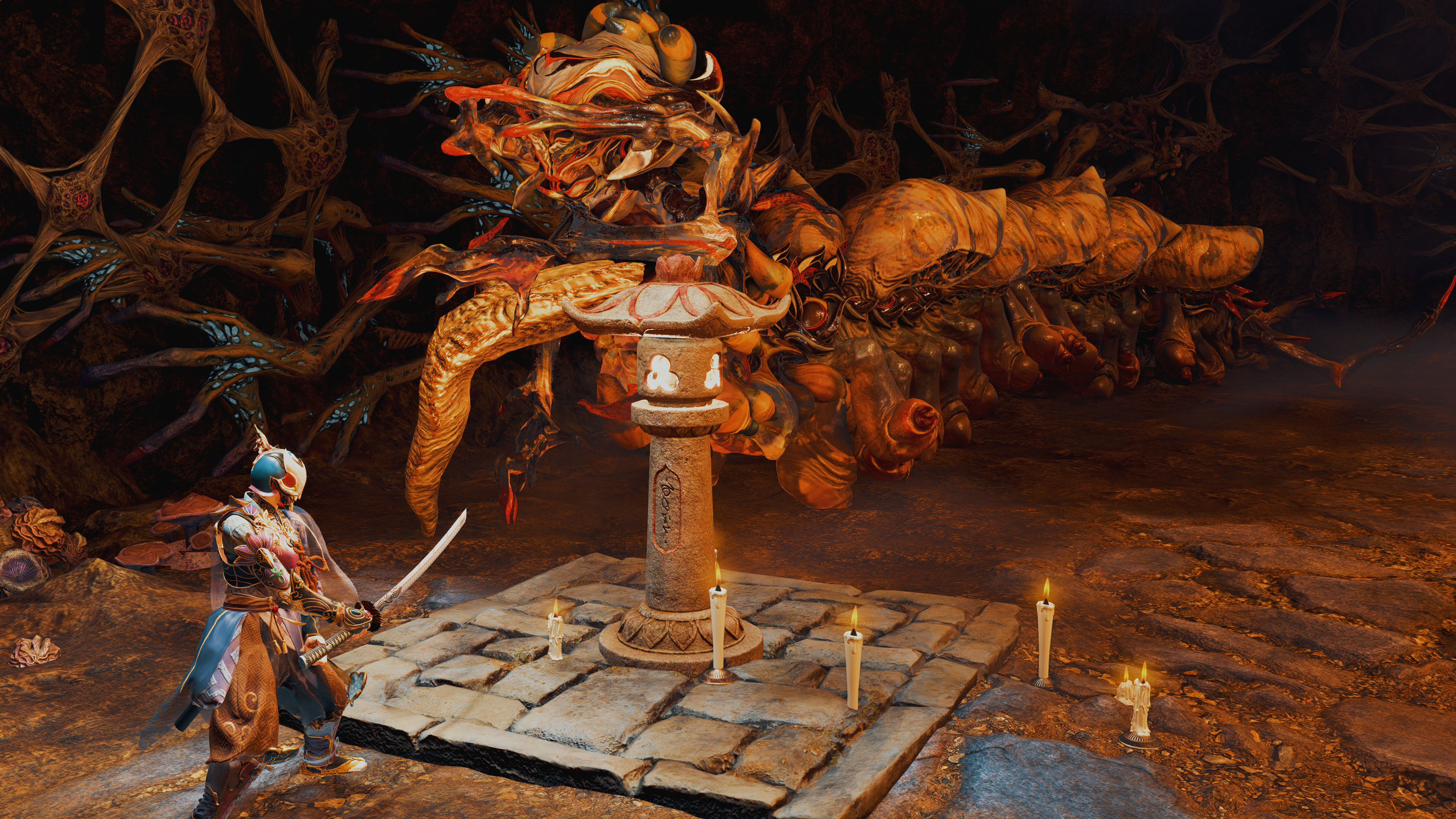 To the extent that there are games like Kunitsu-Gami still being made, bizarre idiosyncratic genre hybrids, they are usually the province of either indies (like the recently released Cataclismo, which rules) or Nintendo (they’re still making good Pikmin games), and they are rarely allowed to have this level of sheer detail, polish and care. Every inch in the game, from the grotesque movements of the Yokai-coded Seethe to the elaborate dances of the villagers, pops in the RE Engine. One of the game’s collectibles is sweet treats, which are painstakingly rendered at a fidelity akin to food in Final Fantasy XV, that one burger from Resident Evil 2 or the more recent Monster Hunter games. This is to say nothing of the soundtrack by Chikara Aoshima, which goes alarmingly hard and includes one track with a freakish John Zorn style sax solo.
