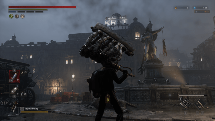 If Lies of P had simply aped Bloodborne competently that would have been satisfying. Bloodborne is still peerless in FromSoft’s catalogue, its excellence made bittersweet by being trapped in the strange limbo of Sony’s involvement. But Lies of P blossoms into more than a simple imitator around the tail end of its second chapter. The game features a Weapon Assembly system, where handles and blades can be swapped interchangeably and weapons can be customized. Using different combinations impacts not only the moveset and efficacy, but the Fable Arts, special moves similar to Ashes of War in Elden Ring. Lies of P also features different elemental damage types that change in efficacy depending on the type of enemy being faced (puppets, carcasses, or alchemists). On top of this, P’s mechanical Legion Arm opens up a lot of possibilities in a way that’s not dissimilar to Sekiro’s Shinobi Prosthetic.