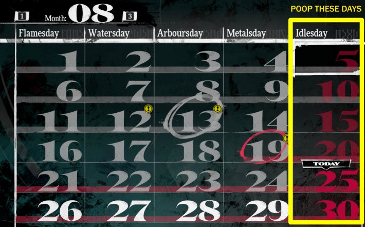 The toilet that your protagonist needs to use to become a better person is on your gauntlet runner, which is the big ship with legs you eventually get. The world of Metaphor: ReFantazio has a five-day week with thirty days in a month like a weird version of the French Republican calendar. The days of the week are Flamesday, Watersday, Arboursday, Metalsday, and Idlesday. The time you want your character to poop is Idlesday, which is the fifth day. Pooping on this day will permanently increase your luck by 1. Doing so on the other days will do nothing statistically, so basically, if any day of the month is divisible by 5, you want to crap. The reason for this is left ambiguous, but showering also gives you experience, just as in life.