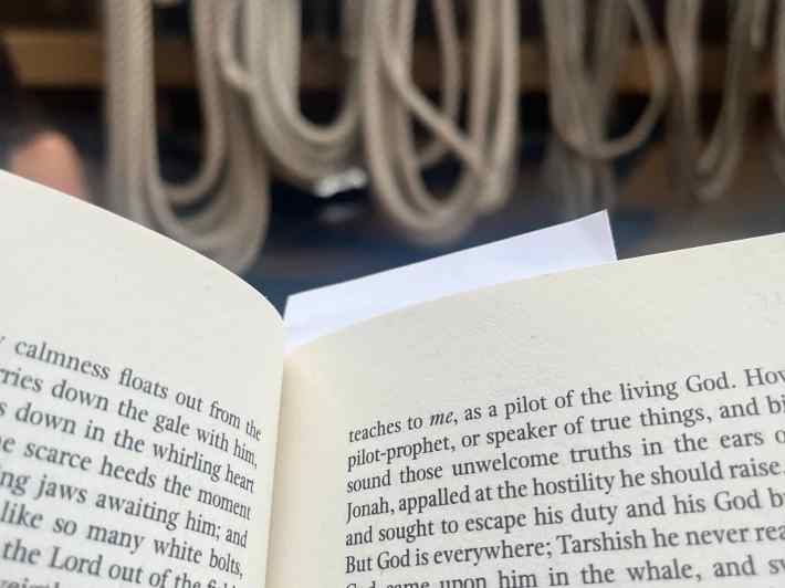 It was, frankly, frequently boring. But that’s what I’d wanted; beyond the absurdity of the adventure of a book-reading marathon on a boat, I wanted to disconnect from all the noise in my head, wanted to see if I could just be here and do this, to look at what was in front of me. It felt not dissimilar to a whaling voyage; as Melville writes,