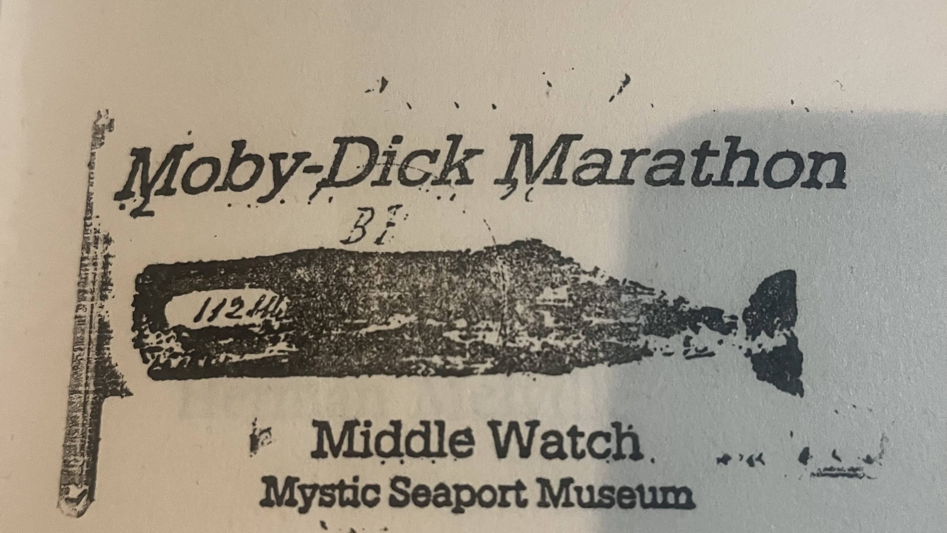 As far as I can tell, the Moby Dick marathon is a thing simply for being a thing. There are a surprising number of gatherings dedicated to getting through Herman Melville’s dense 1851 whaling classic in one uninterrupted go. You’re probably familiar with the outline of the book–“Call me Ishmael,” Ahab, the white whale–but might not know that the plot is actually the minority of its roughly 600 pages and 135 chapters, plus epilogue. If you know about the rest of it, you’re probably asking what my friends asked me when I told them I was going to a two-day Moby Dick marathon in Mystic, Connecticut: why?