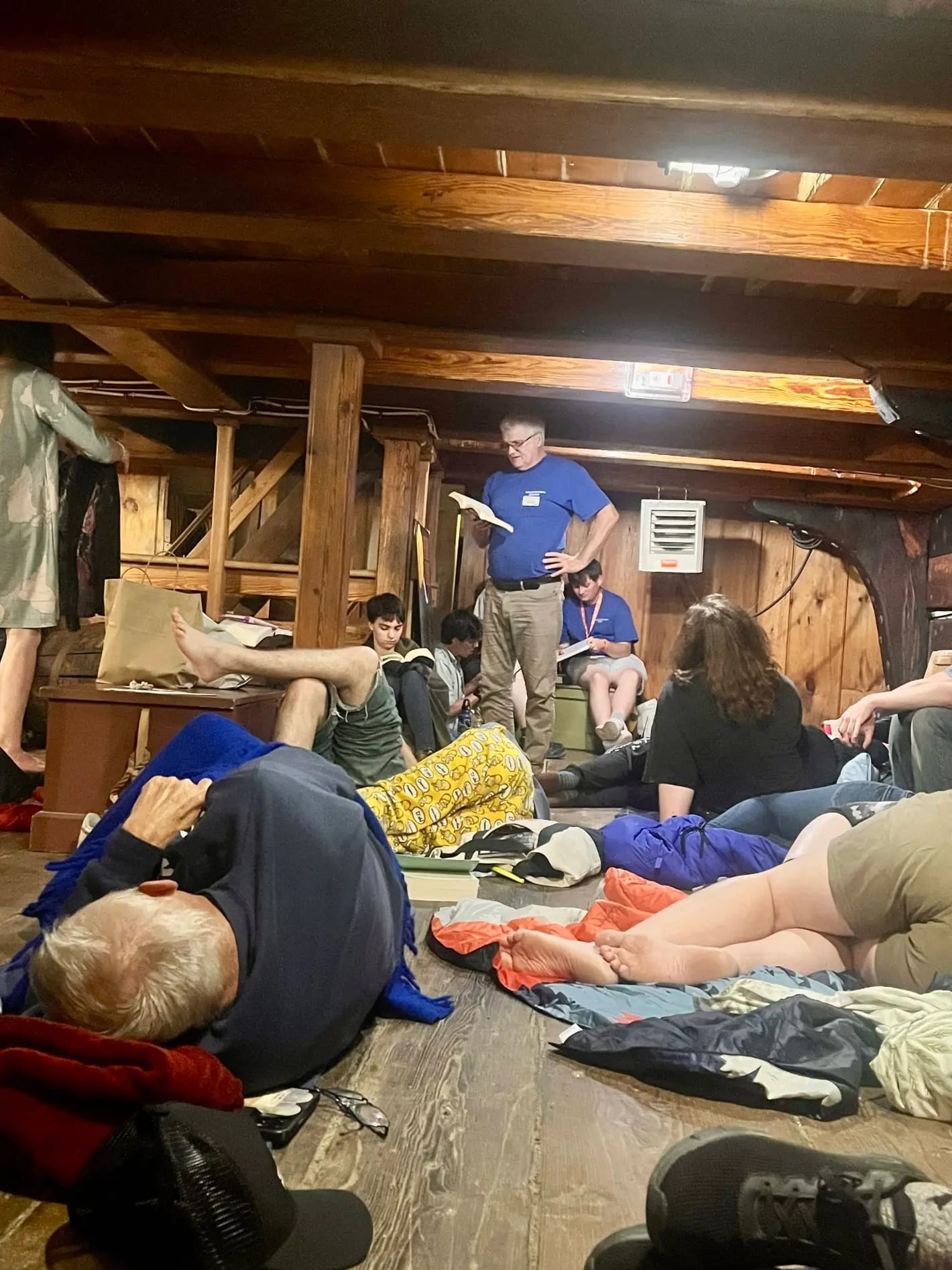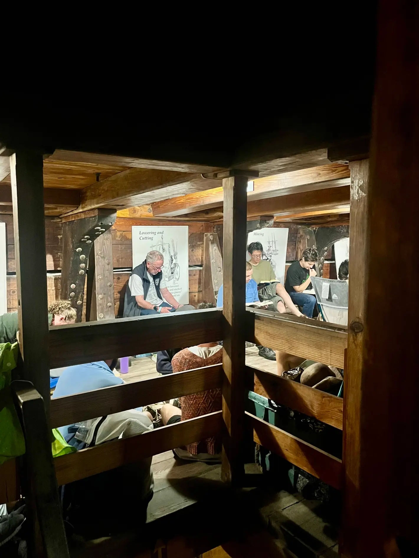 The 2025 marathon, which ran from July 31st to August 1st, was the Seaport’s 40th, making it the longest-running such event, though not as well-known as the most famous iteration in New Bedford. I imagined huge crowds, a ton of pomp and circumstance, an abundance of rules to keep attendees from wandering off into the museum grounds at night or falling into the river. I kept worrying at the Seaport’s ticket page in the week before, wondering if I should buy general entry in advance in case the museum’s sizable grounds sold out. But instead it was a small group, numbering less than 30 overnight with more during the day. Besides asking us to not eat onboard the Morgan, Seaport staff seemed to trust that anyone who showed up could take care of themselves and their temporary home. One regular participant said she felt like the Seaport doesn’t even really advertise the event; I’m not sure if that’s to keep it small since there’s only so much room, though the overnight reservations were capped at 100, or just how the Seaport operates.