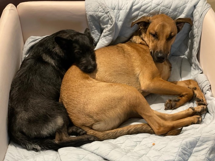 Don McGowan: Sure. I'm originally from Montreal. I spent eight years as a corporate litigator in Montreal. Went to Microsoft because I was headhunted for a job in their cybersecurity legal team. Ended up as the head lawyer for what was then called Microsoft Game Studios by accident; I was trying to get a friend a job and the person to whom I was talking said "We were hoping maybe you would just be the person to take this job". So I did. When not doing work stuff, I live outside of Seattle with my wife and my two dogs, Biscuits and Gravy (photo attached):
