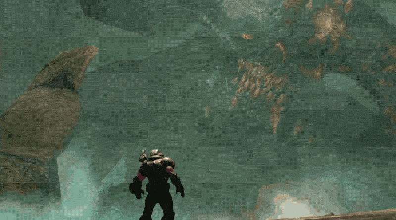 But other Doom trailers go differently: In Bethesda’s 2021 trailer for Doom Eternal: The Ancient Gods Part One on Switch, there’s a moment early on where Doomguy shoots an enemy:
