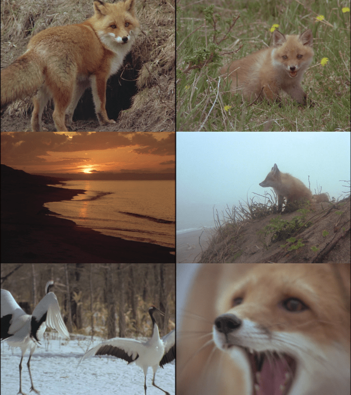 Kita-kitsune Monogatari is a family-oriented “documentary drama” about a family of foxes. It follows the story of Ezo red foxes in northern Japan. It originated as an idea from Shintaro Tsuji, who had read about the lifecycle of foxes in an academic journal. Originally intended to be a half hour TV show, the scope widened once Koreyoshi Kurahara got involved with the project, becoming a 2 hour long, rock-filled docudrama. The movie cost more than 2 million dollars and a crew of 30 shooting over 4 years, using specially designed telephoto lenses. This all resulted in over 700,000 feet, or about 150 hours, of film.