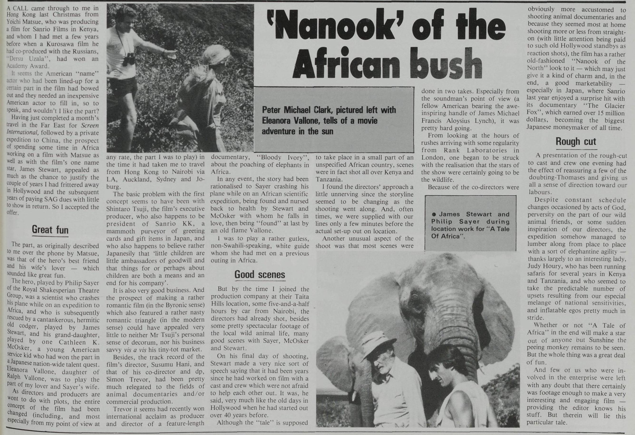 A Tale of Africa doesn’t really hold together. According to actor Peter Michael Clark in Screen International, the plot was constantly shifting, with a love triangle subplot removed, possibly at the behest of CEO Shintaro Tsuji. In addition to this, most shots were done in two takes, much to the frustration of the soundman. There is a sense that the bones of a much better, more ambitious movie are peeking through, a drama with a bit more bite, but what is delivered is inoffensive with beautiful nature photography. Variety hated this movie, filing one of the funnier vintage reviews I’ve seen: “Stewart, despite drawling such patent falsehoods as ‘elephants are friendly,’ nonetheless appears ill at ease around these and other beasts. All the more incongruous than that his home should be infested by all manner of little critters performing cloyingly cute stunts.”