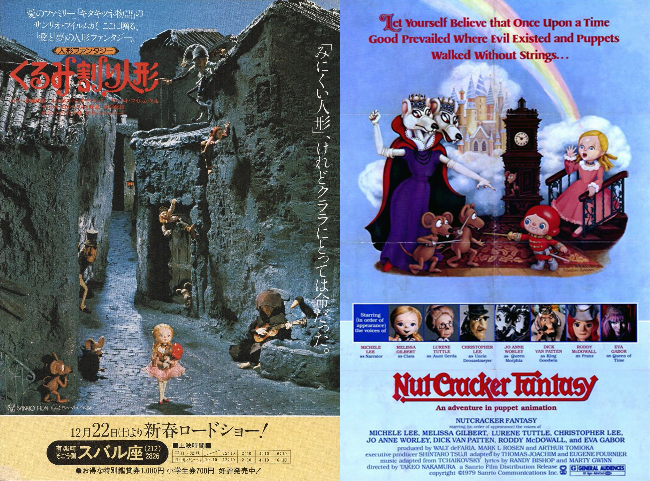 Nutcracker Fantasy got multiple releases, and the Western release includes voices by Christopher Lee, Roddy McDowell and Dick Van Patten, although it cuts some very good material from the end, including the aforementioned clown. The movie would eventually be rereleased in 3D in 2014, cropped from its original 4:3 to 16:9, with art by Sebastian Masuda, a pop artist mainly known for directing singer Kyary Pamyu Pamyu. Just watch the original.