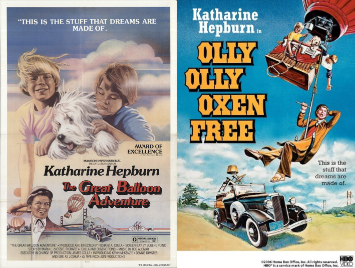 Olly Olly Oxen Free is rough. This is a balloon movie starring an elderly Katherine Hepburn. Nothing happens for the first 12 minutes: a couple of kids look for stuff for a balloon, and then Hepburn shows up as an elderly junk lover and starts chewing the scenery. I quickly lost count of the number of times she referred to something as “simply grand.” It takes nearly an hour before they get into a hot air balloon. The New York Times review of the movie praised Hepburn’s presence but said that the movie was “so soft-spoken and gentle that bland is its dominant style.” I would really like to know how this movie got pitched, aside from someone saying, “We would love Katherine Hepburn to be in a movie, is she around?” On the plus side, you do get to see Katherine Hepburn dangle out of a big hot air balloon.
