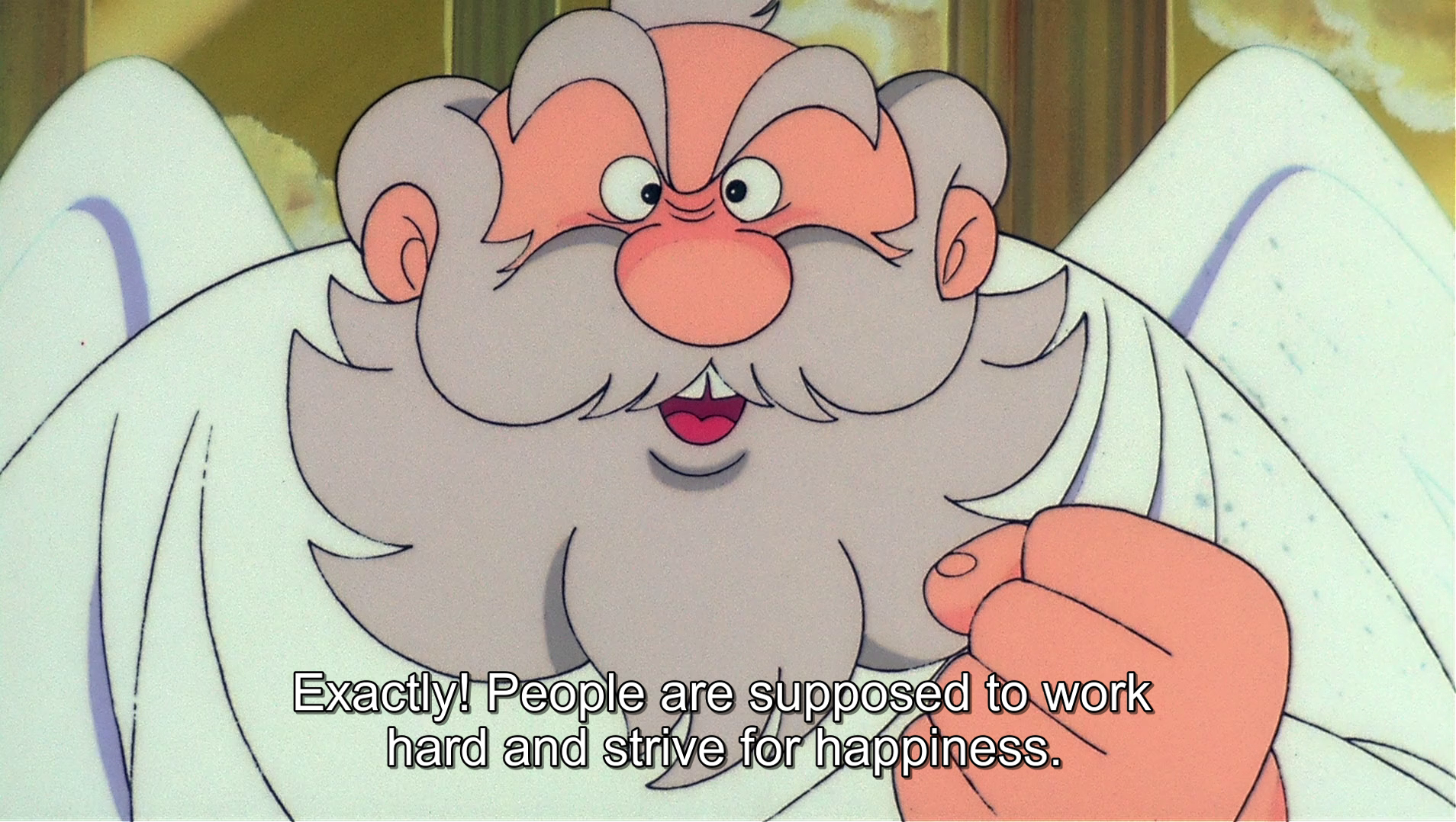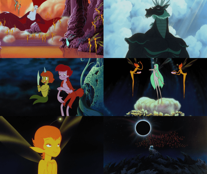 If you own a bar, A Journey Through Fairyland is in the same category as Zardoz, Barbarella and Liquid Sky: a fantastic thing to put on a TV and have drunks ask, “What the hell was the name of that movie that was playing the other night?” It is a slightly less traumatizing or confounding movie than the rest of the Sanrio film catalog from this era. Like classical music, it’s a little dry for some people. A nice thing going for it is you don’t need to pay attention to the plot to enjoy it. It exists less as a movie and more as a series of cool images and sounds that you can drift in and out of. It’s just a nice movie, save for one scene closer to the end where the boy suddenly kills a Lovecraftian Great Old One for reasons I am still sort of unsure about.