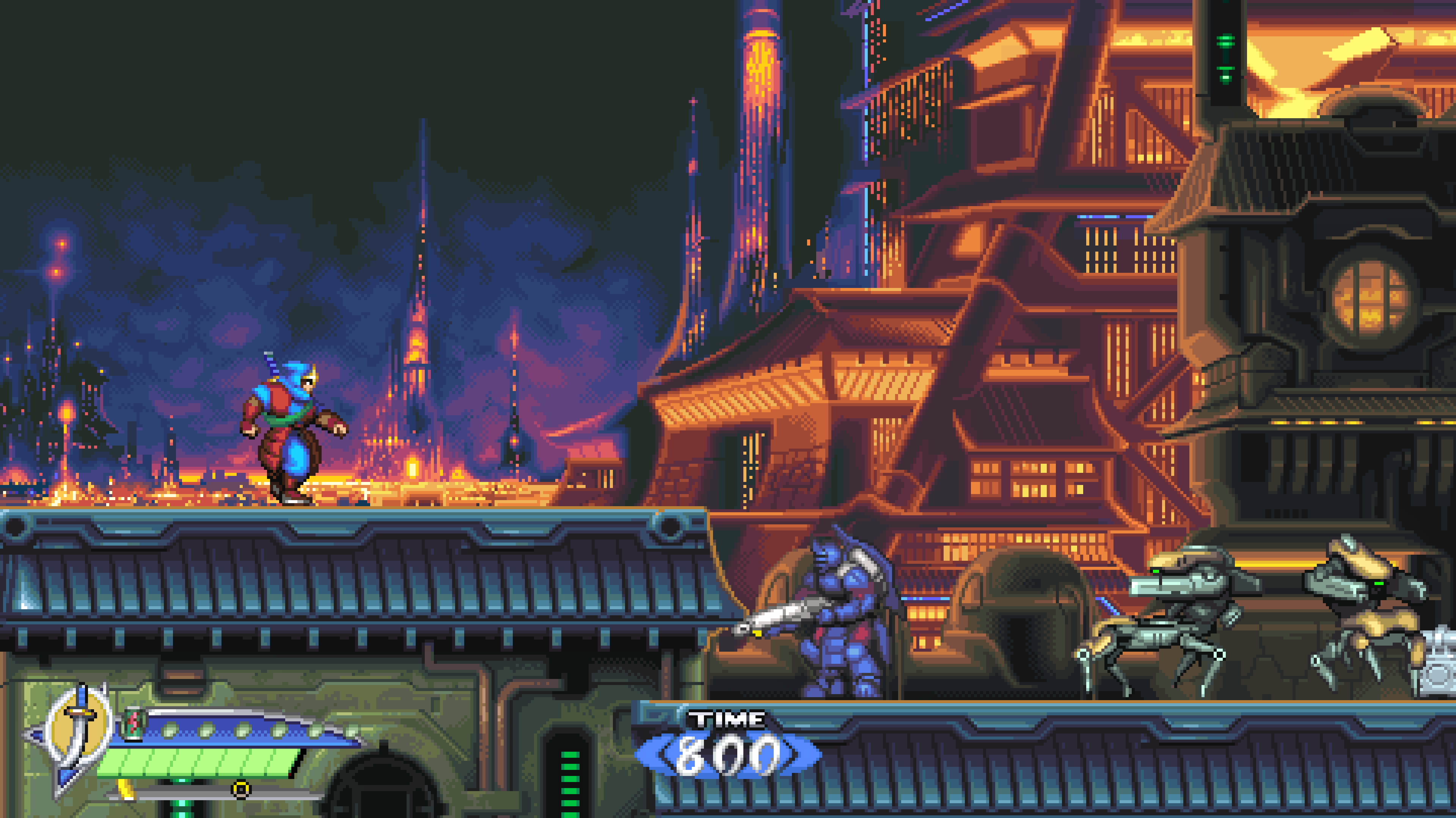 What struck me the most while playing Shadow of the Ninja - Reborn is the art. Outside my favorite arcade game Osman (AKA Cannon Dancer), I have seen few games in the 16 bit style that look this lush and complex. This is made more impressive by the fact that the art is the work of one person, Shunichi Taniguchi. His ability to render gargantuan machines is second to none. The sheer complexity on display in this pixel art is mind-boggling, and speaks to someone who has been at this for ages (you may have also be familiar with his work on the Power Rangers fighting game, the iconic Shin Kidō Senki Gundam Wing: Endless Duel, and of course the original Shadow of the Ninja). This efficiency is extended to the whole team, given just how short the credits are compared to how beautiful and polished this game is. In addition to this, Iku Mizutani returned to perform the soundtrack himself.