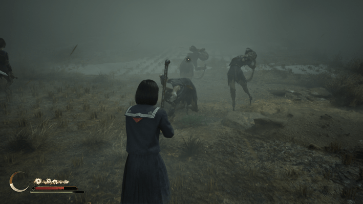I’d venture a guess that many players coming to Silent Hill f, perhaps even a majority, are folks who have some familiarity with the series and genre.These are players confident in their ability to anticipate whatever scare the funhouse has prepared for them. Silent Hill f plays with this impulse: There are enough “living” scarecrows to keep players on their toes, but because most are safe until meddled with, there’s plenty of moments where “smart” players might simply be wrong about what is happening around them. That sense of doubt is important to maintaining an oppressive mood. There are ways to get through this segment with a very minimal amount of violence and few actual monster encounters if you’re careful.