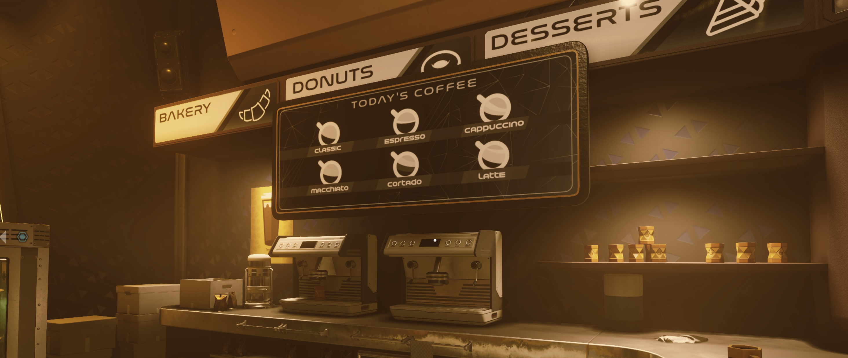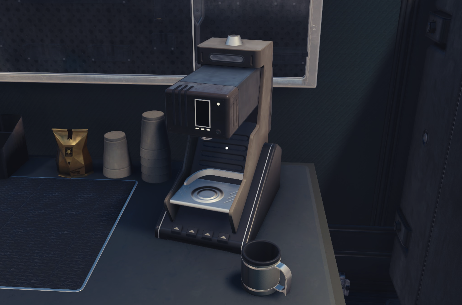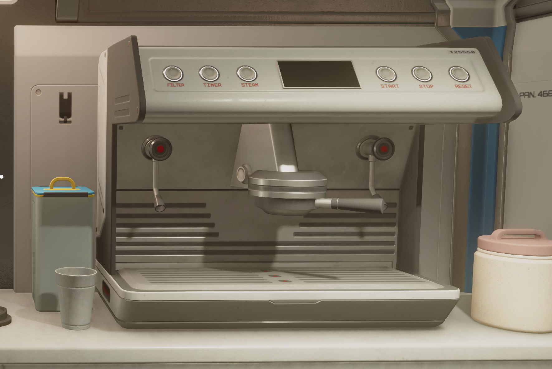 Starfield's in-universe coffee situation goes like this: there are three distinct types of coffee machine spread throughout its environments, while there's also a retail chain specialising in coffee sales (that you can visit, and which some quest storylines actually include). Which is actually pretty great, most games might have just put a single coffee machine in every ship and called it a day, so I at least appreciate the lengths Bethesda went to here to depict our species' continued reliance on a cup of joe.