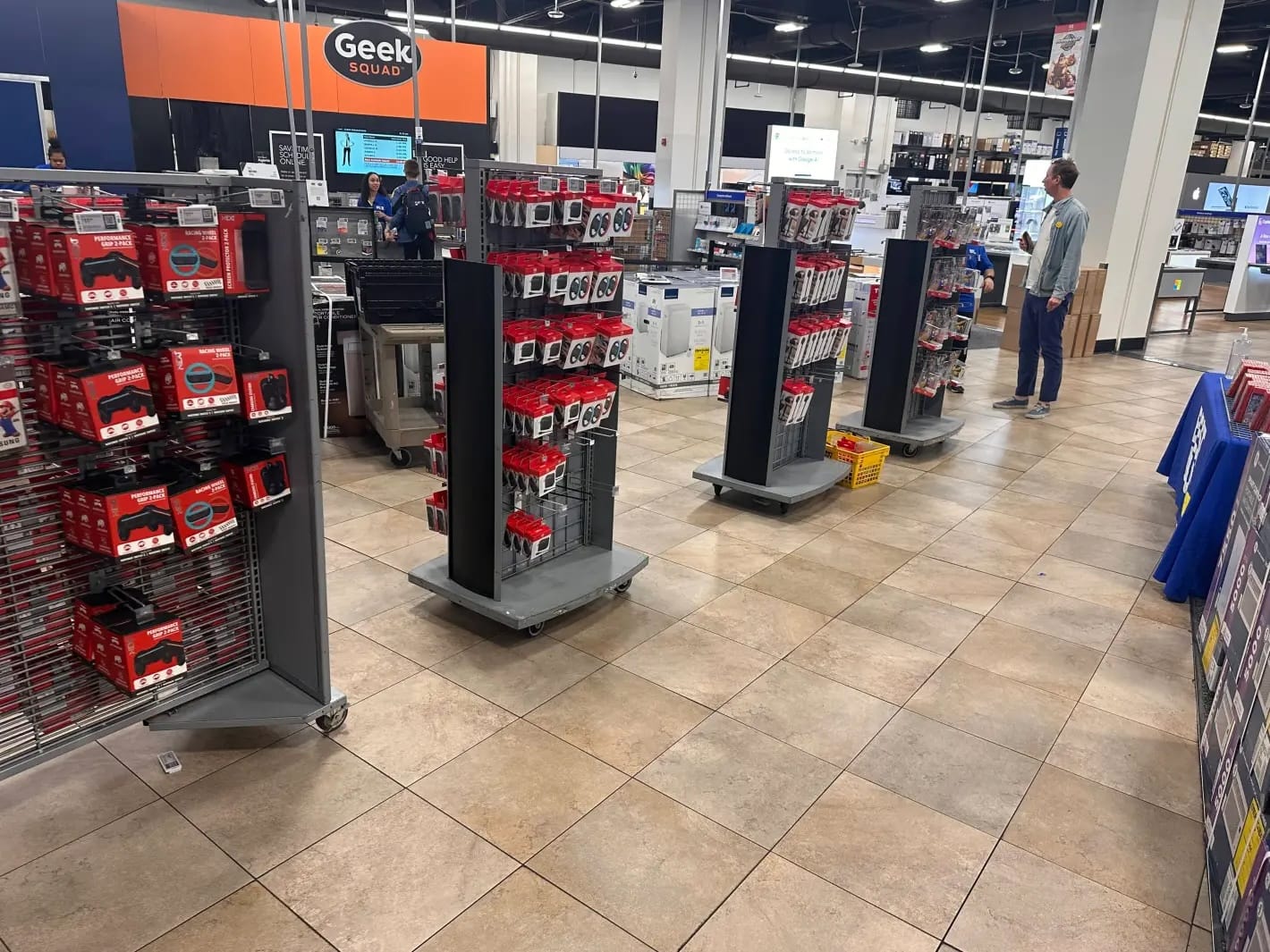 One line was for people who had pre-ordered, while the other was for people who hadn’t. Autumn, in the pre-order line, told me that neither line had moved before I got there, and they proceeded to not really move again for a good half hour. When the store did start to let people in, it was two or three at a time, picking from between the lines via some inscrutable logic. The whole thing was managed by a remarkably calm and cheerful Best Buy worker whom Autumn and I hoped was getting immense amounts of overtime. There were two little kids who seemed excited, and a couple ahead of Autumn who had played Mario Kart while waiting, one of them in a Super Nintendo World Mario Kart jersey, but there wasn’t much fan energy that I could observe, despite how many people were willing to wait in a midnight line. A few passersby asked what was going on, and a cop kept parking nearby and then zipping off while saying “I’ll be back” over their bullhorn for some reason, but otherwise there wasn’t much excitement or spectacle–just, as Autumn pointed out, people waiting in a line.