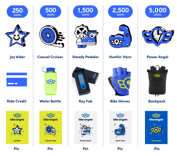 Bike Angel points can be redeemed for several rewards, from membership extensions to Lyft credits to gift cards. If you accrue enough Bike Angel points, there are also a series of little practical trophies you can get, from a knockoff Nalgene bottle all the way up to a backpack that I’m sure they got off of Alibaba. Some people have made a living on this in the past, but for most people this isn’t worth going out of your way to do from a basic labor perspective. That said, if you are going in a certain direction anyway, you might as well.