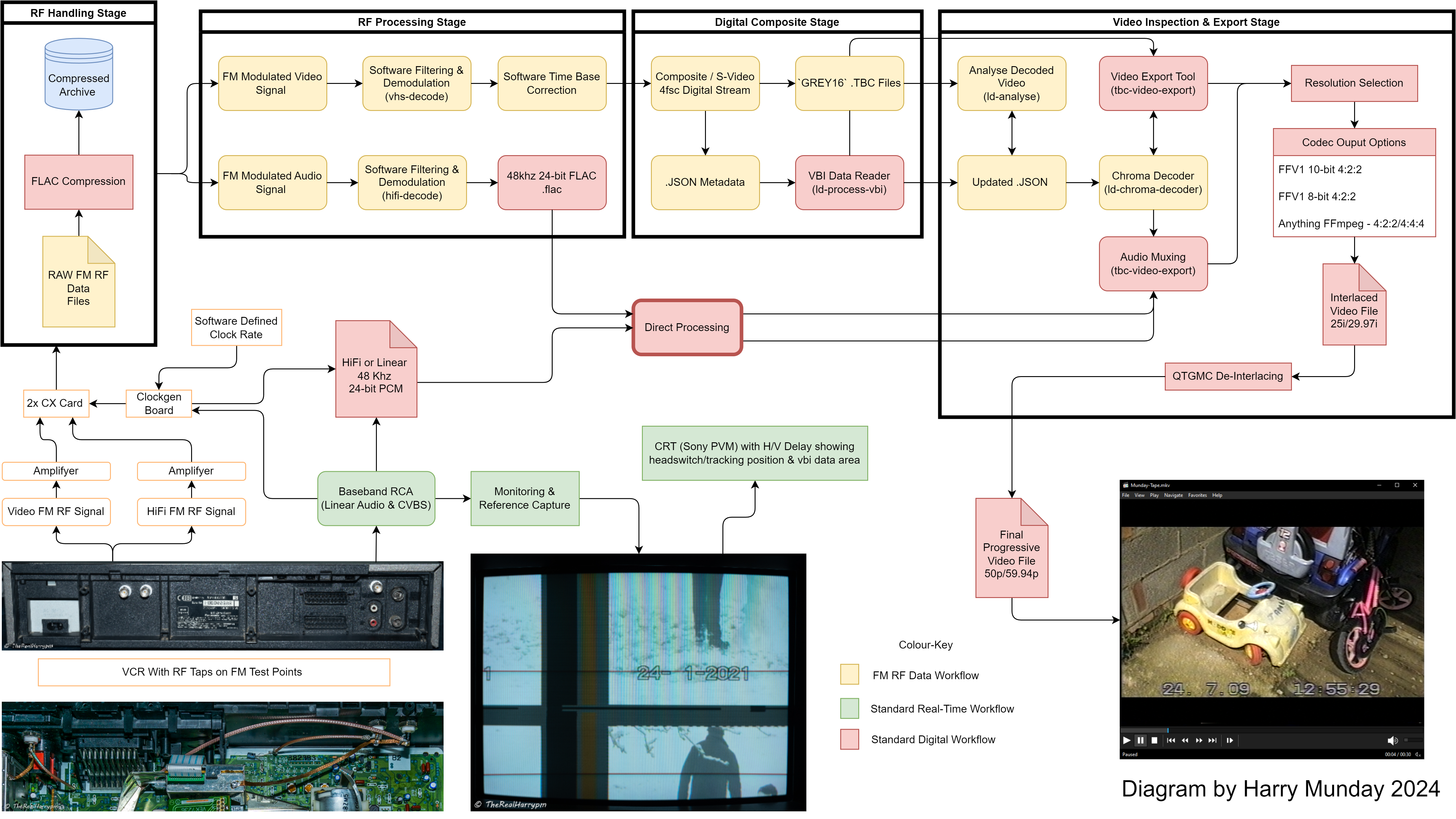 That said, there are countless advantages to FM RF decoding. Because you are not reliant on your hardware for decoding and timebase correction, the variation from player to player matters far less. You can get an incredible capture setup with a cheap consumer VCR (I personally prefer Panasonic players), a cable, and an inexpensive card from Aliexpress. What would normally have cost at least a thousand dollars, now instead can be got for less than 100, although I have spent way, way more, albeit with significantly more work.