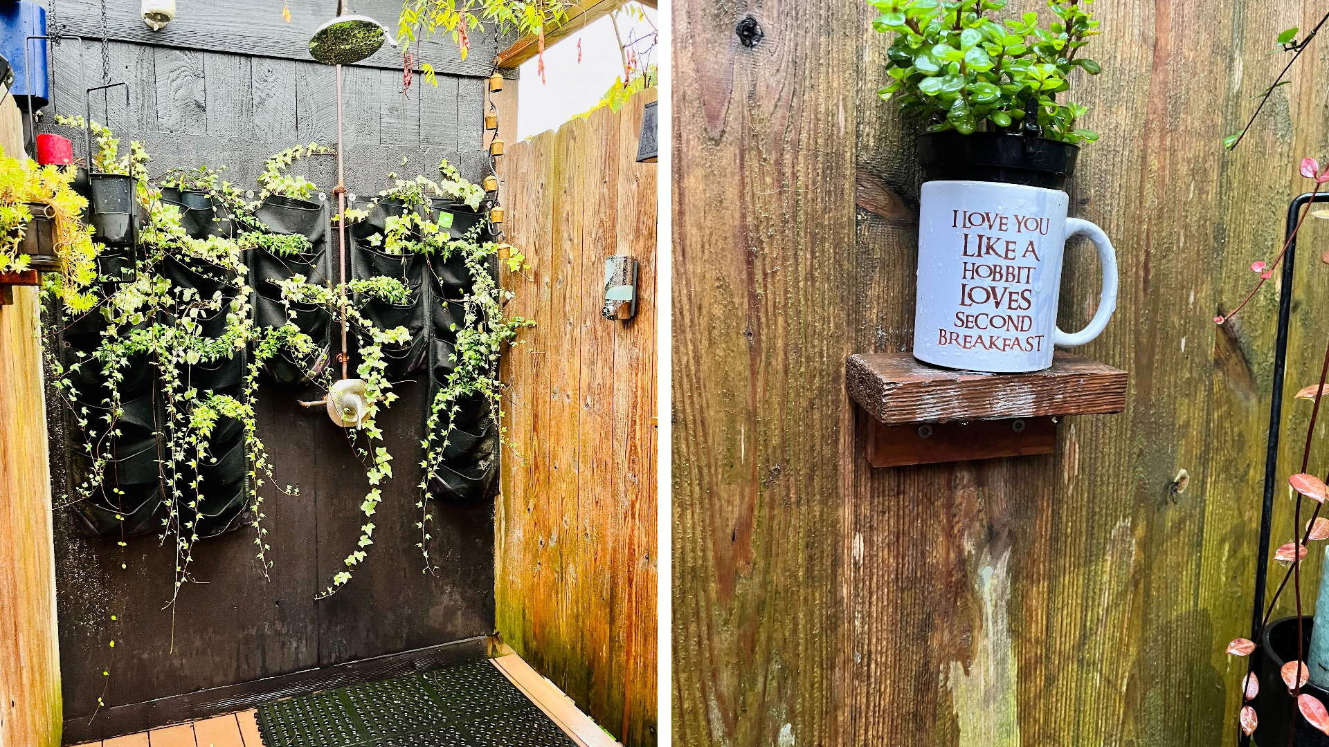 The showers were gorgeous, with plant-covered walls and plenty of scalding hot water. With no one else waiting for them I lingered for an irresponsibly long time, pep-talking myself that it was OK to struggle and equally OK to decide not to suffer more than I had to. As I dragged my heels on getting out, I noticed a coffee cup sitting on a ledge that read “I love you like a hobbit loves second breakfast.” There you go, I thought. A hobbit shower.