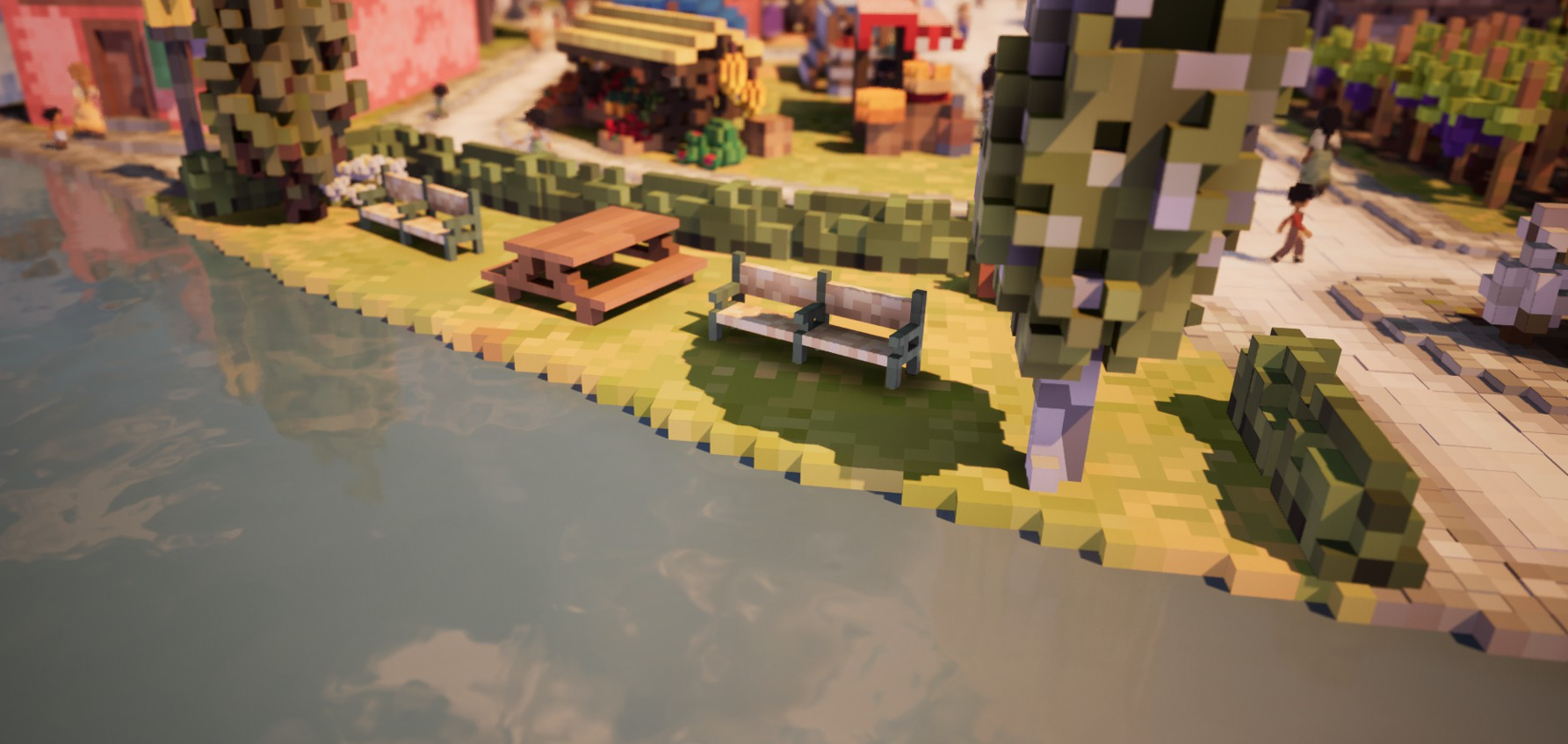 Zoom in, though, and there are huge sections of Town To City where you're not really city-building at all, and everything feels closer to Tiny Glade or Townscaper than SimCity. Through a combination of the game's flexible voxel graphics and a creation suite more interested in painting than laying along grids, Town To City lets you spend countless hours just...being creative. I lost track of the amount of time I spent making little bendy roads up hillsides, planting little hedge parks in between houses, putting flowerpots on people's balconies and planting flags where needed, not because it was important (though it can be, because your inhabitants’ happiness is linked to the aesthetics of their neighbourhood), but just because I thought it looked nice.